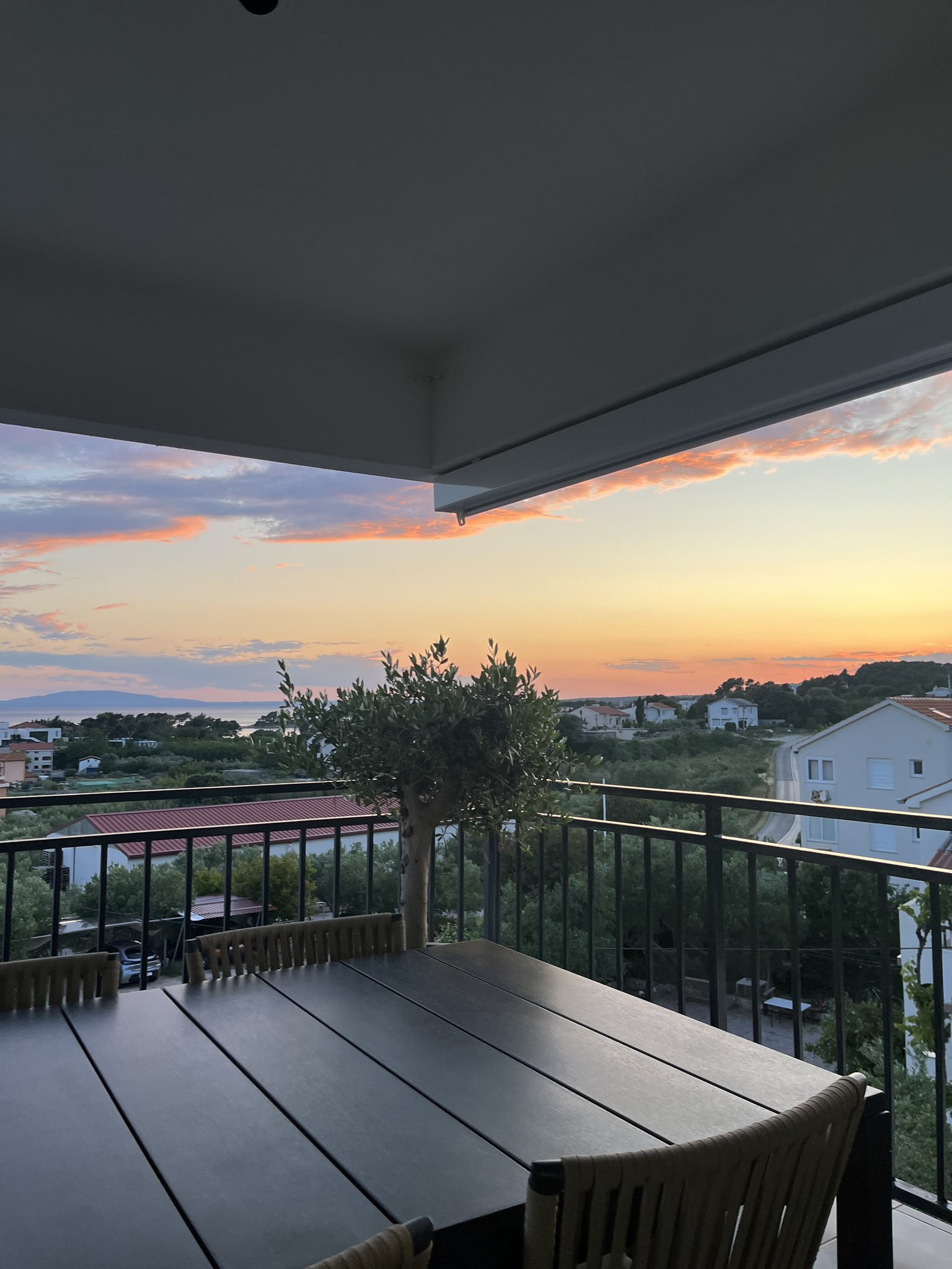 Ein geräumiger Balkon mit herrlichem Meerblick ist perfekt, um Ihren Morgenkaffee im Schatten zu genießen oder einfach auszuruhen und ein Buch zu lesen, während Sie die erfrischende Sommerbrise genießen.