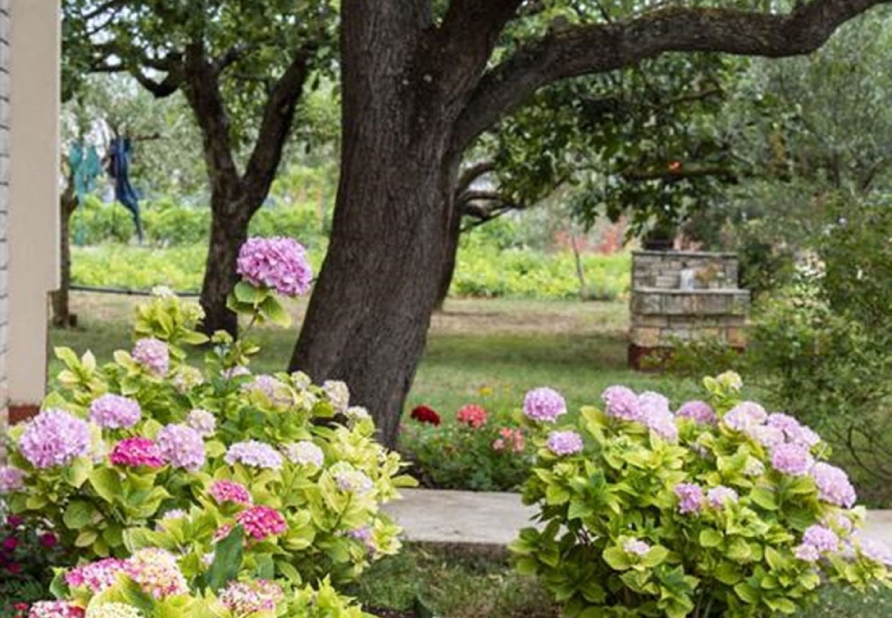 Das Gebäude ist von einem Garten voller bunter Blumen umgeben, die vom Eigentümer liebevoll gepflegt werden.