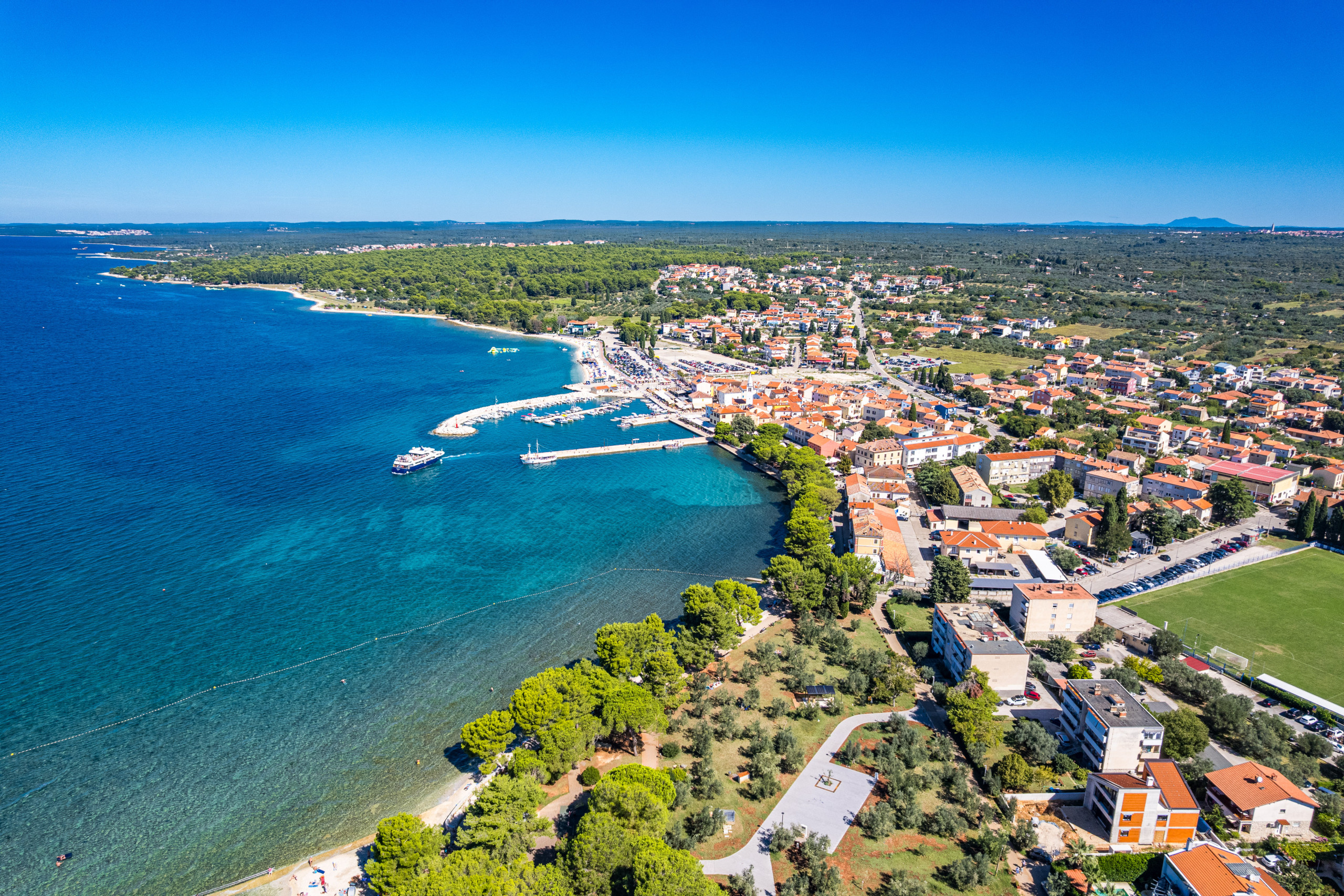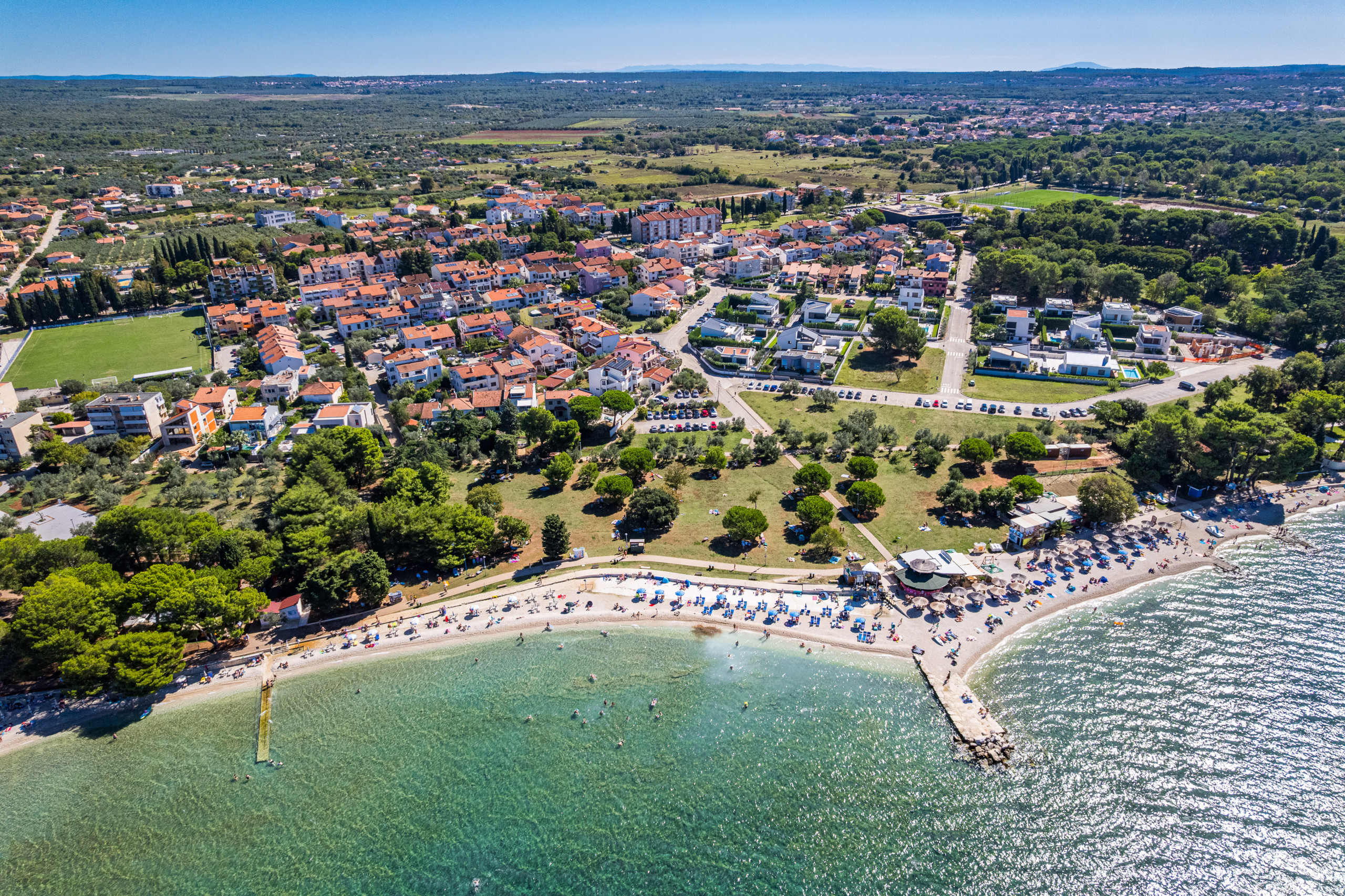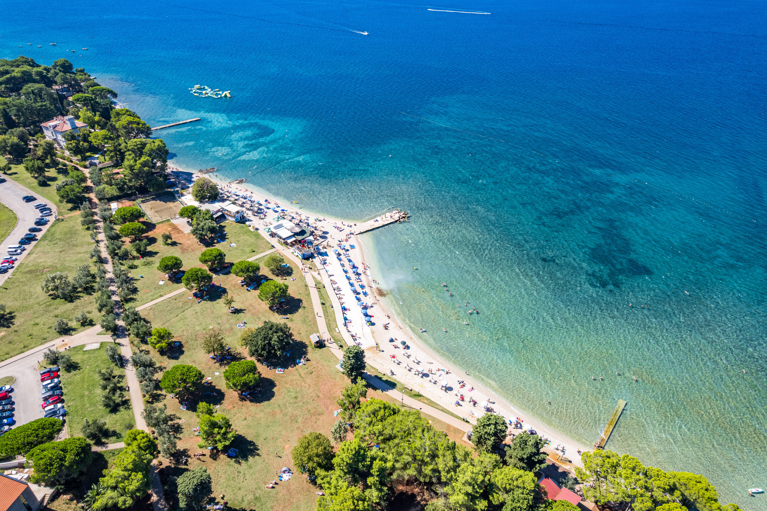 Fazana ist ein kleinerer Ort, bekannt für seine schöne Architektur und einen Strand, der aufgrund seines flachen Wassers sehr gut für Kinder geeignet ist.