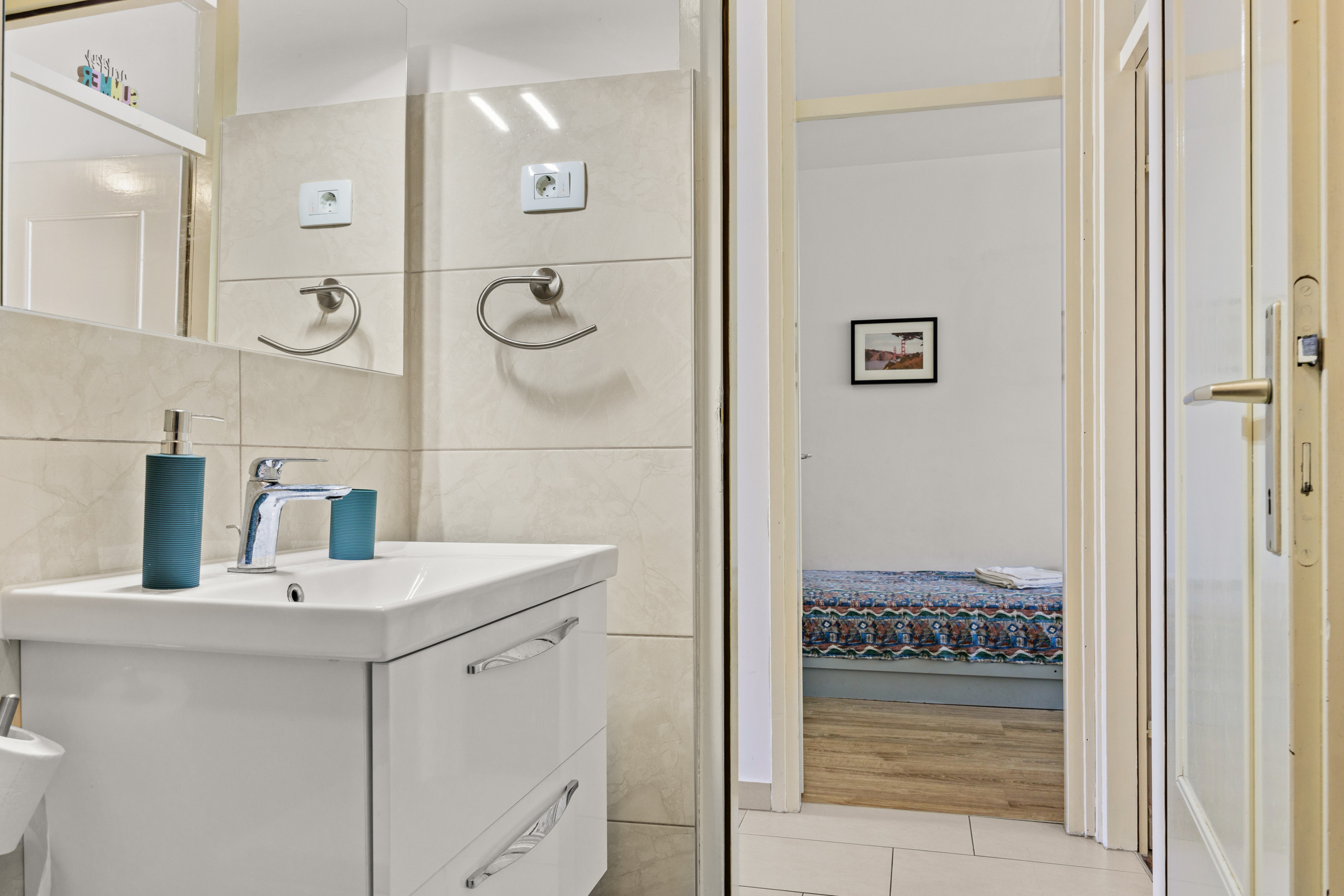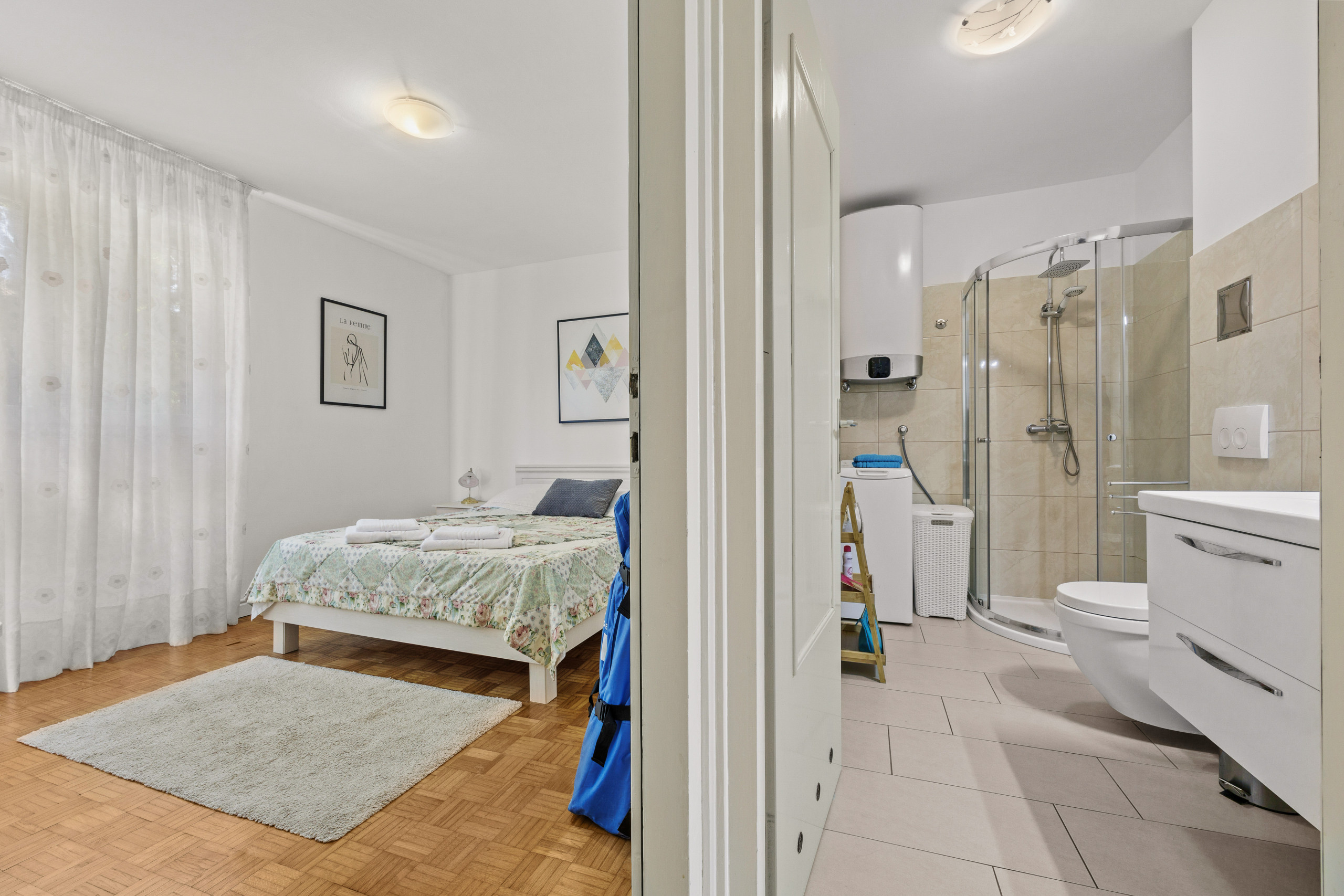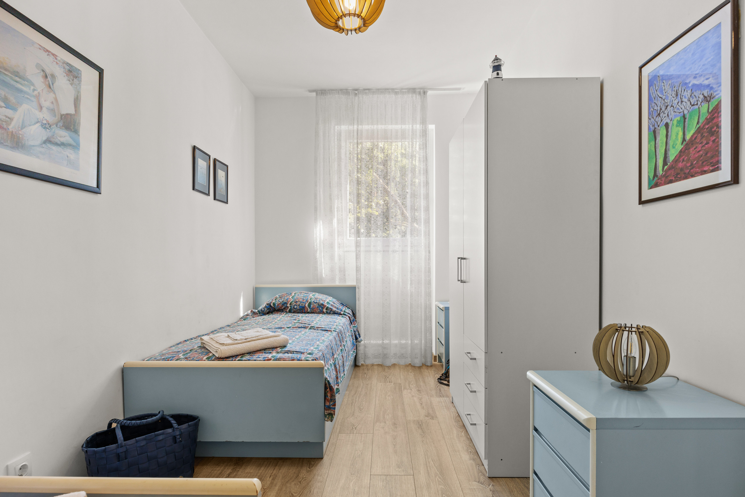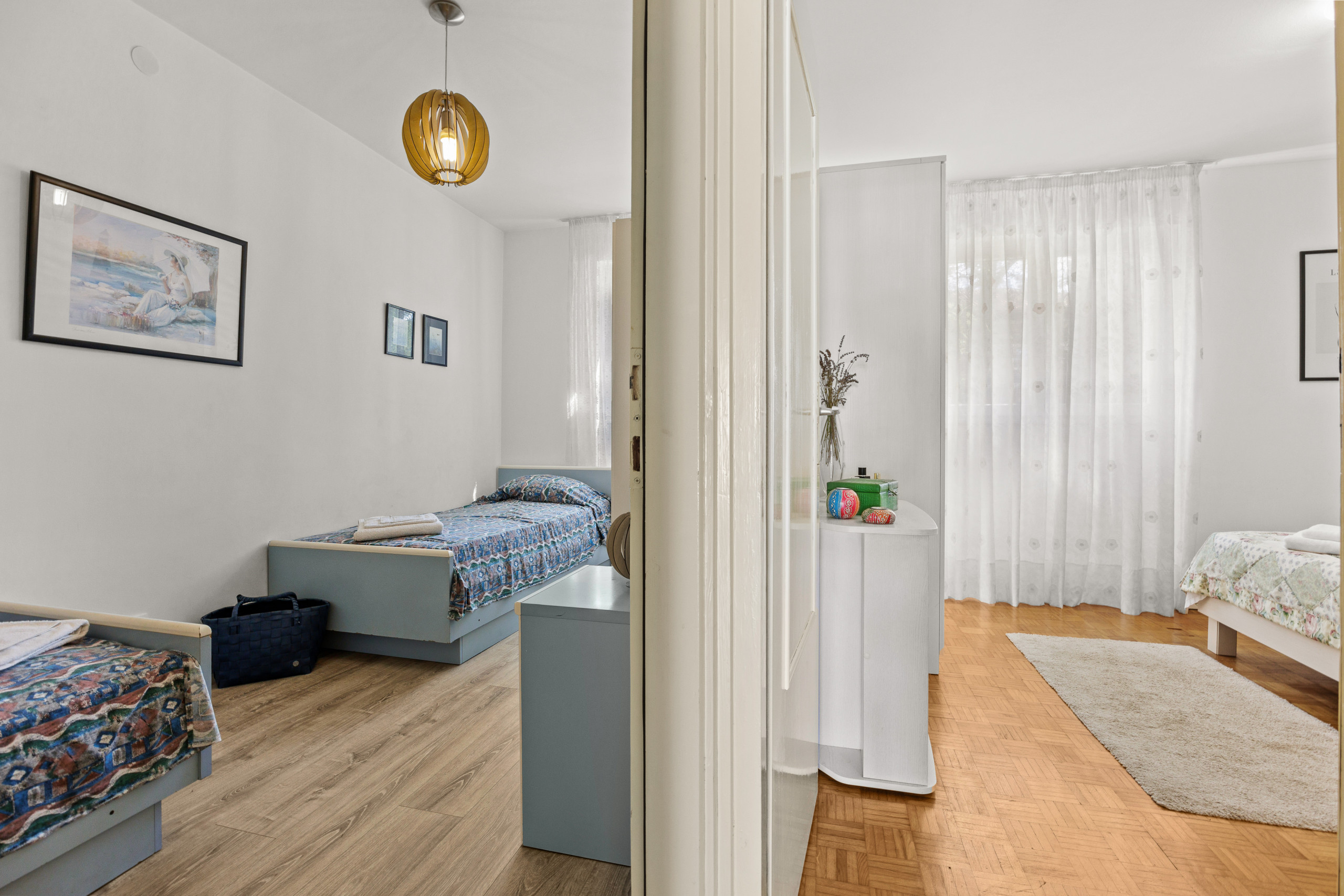Die Wohnung ist für 4 Personen geeignet, die in zwei Schlafzimmern mit Doppelbetten schlafen können. Ein Zustellbett ist verfügbar.
