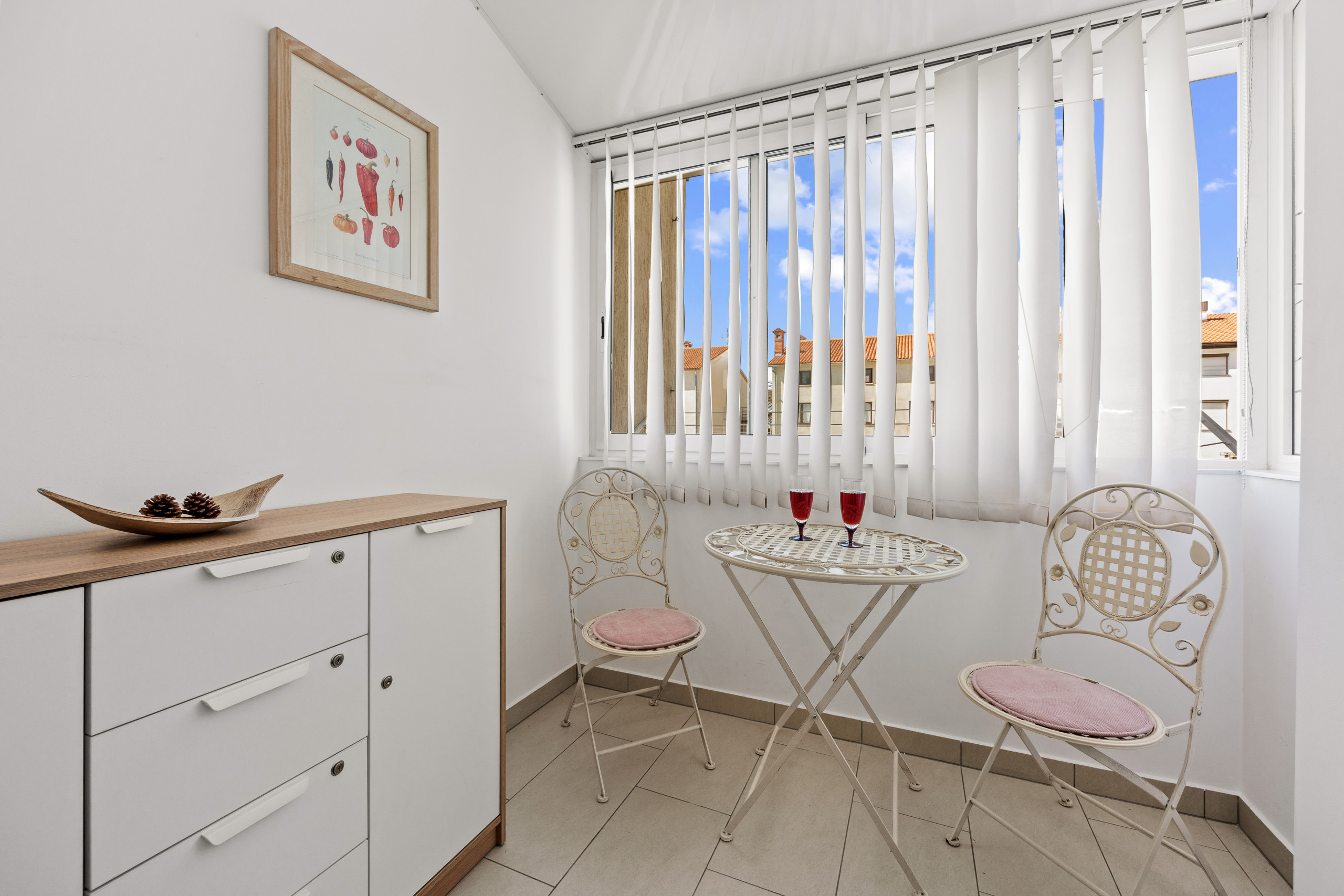 Es stehen zwei Balkone zur Verfügung, einer in der Küche und einer mit Meerblick im Wohnzimmer.