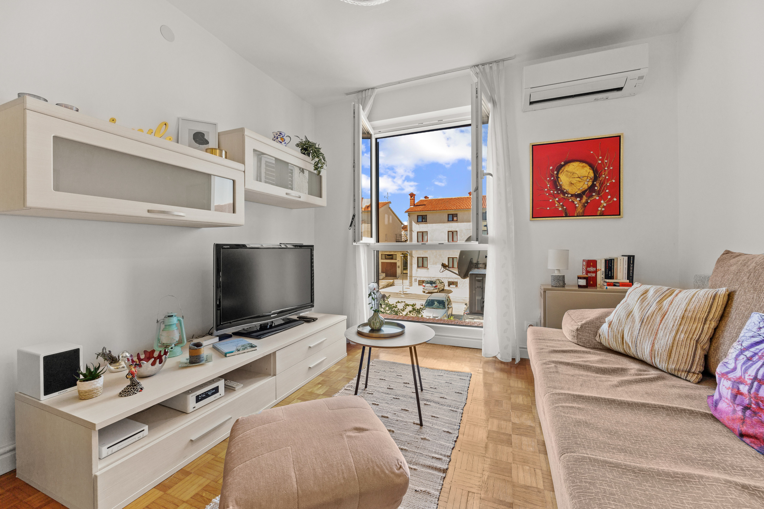 Klimaanlage sorgt für Komfort an warmen Sommertagen, während der private Balkon einen entzückenden Raum bietet, um den Morgenkaffee zu genießen. Die Wohnung verfügt über einen privaten Parkplatz, der sich im selben Gebäude befindet.