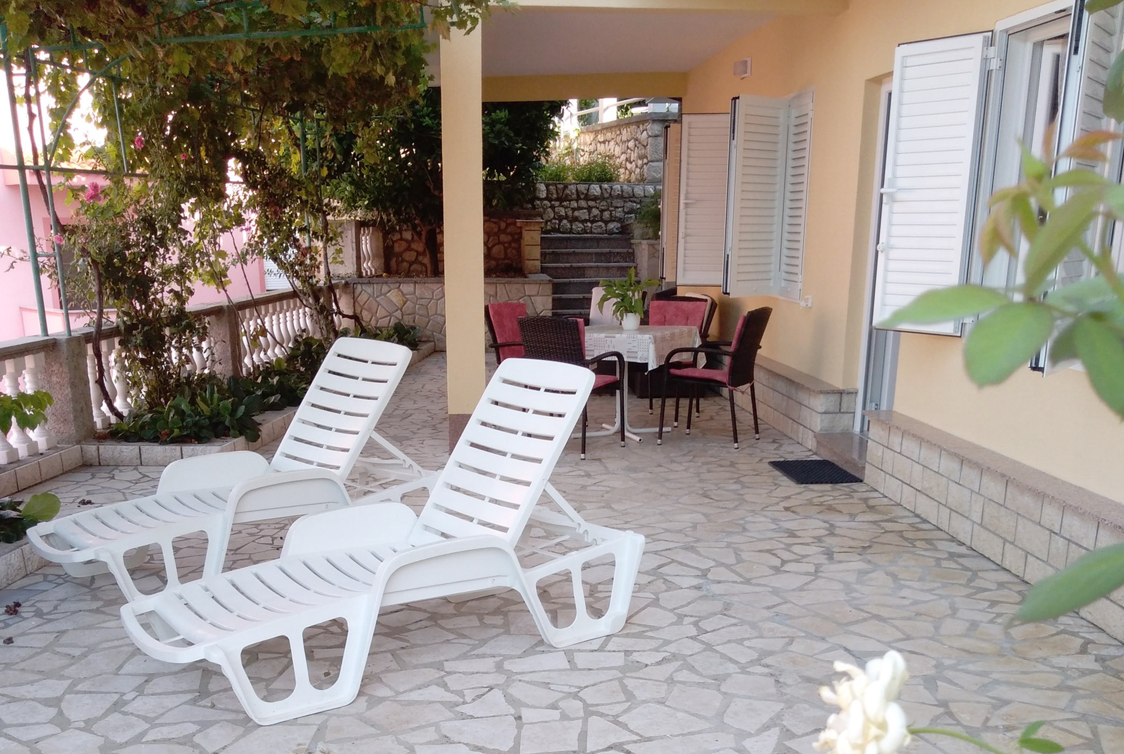 Das absolute Highlight der Wohnung ist die große private Terrasse mit wunderschönem Meerblick. Es ist der perfekte Ort, um den Morgenkaffee zu genießen, lange Sommerabendessen zu verbringen oder bei Sonnenuntergang ein Glas Wein zu trinken und dabei die Adria zu überblicken.