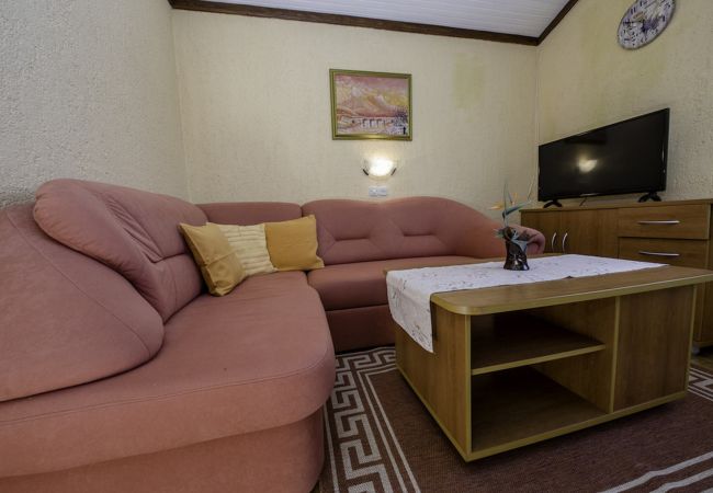 Das wundervolle Apartment Maslina mit zwei Schlafzimmern ist einfach die perfekte Wahl für einen Familienurlaub. Die Wohnung befindet sich im ersten Stock des Gebäudes und verfügt über zwei private Balkone mit Meerblick.