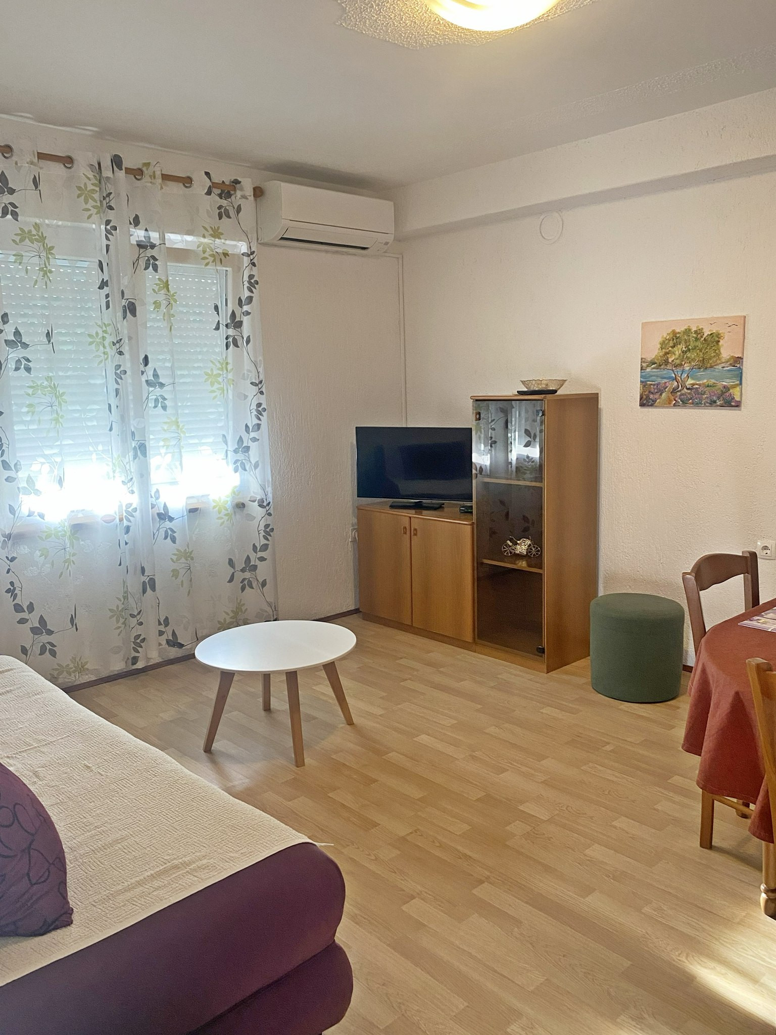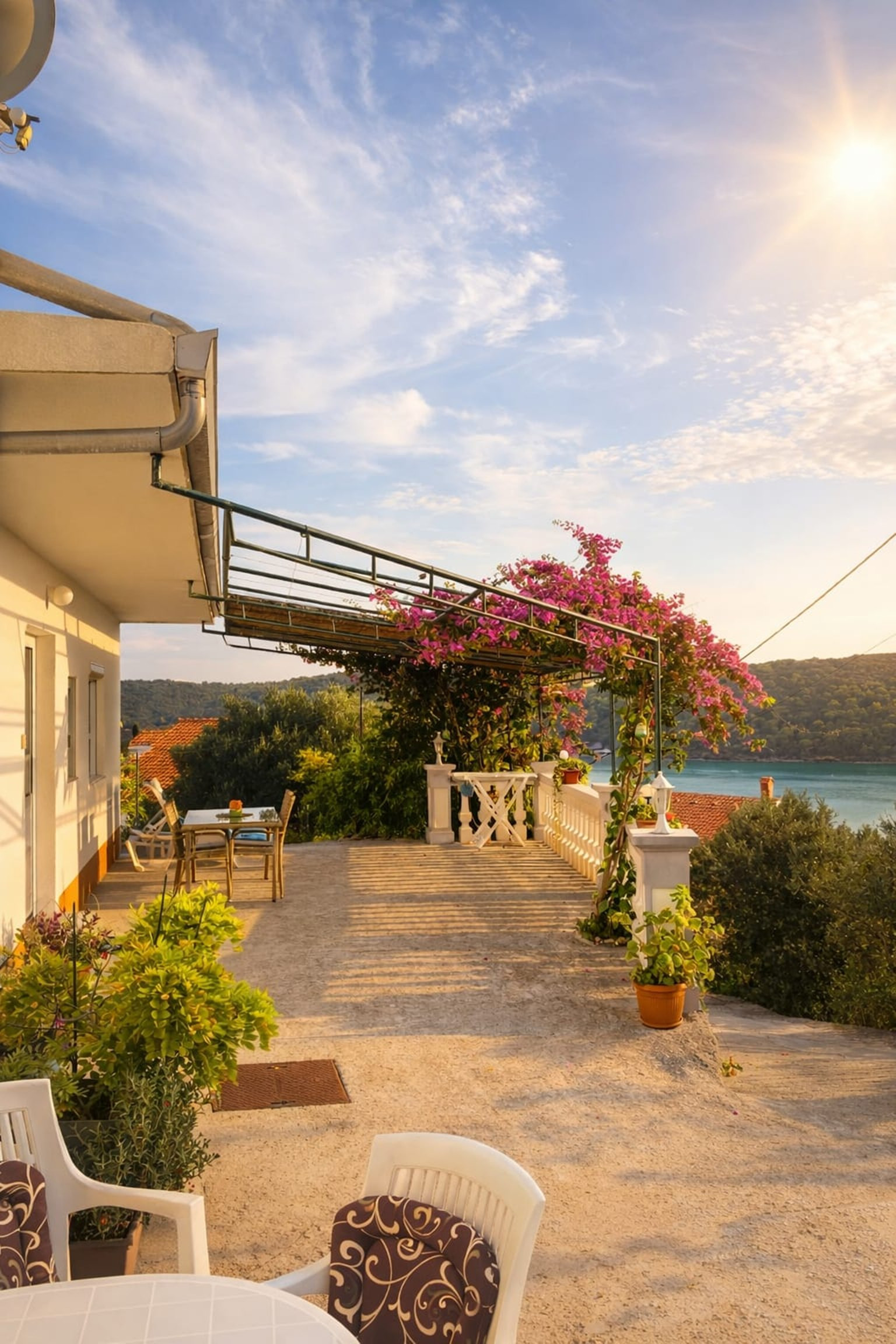 Das absolute Highlight der Wohnung ist die große private Terrasse mit wunderschönem Meerblick. Es ist der perfekte Ort, um den Morgenkaffee zu genießen, lange Sommerabendessen zu verbringen oder bei Sonnenuntergang ein Glas Wein zu trinken und dabei die Adria zu überblicken.