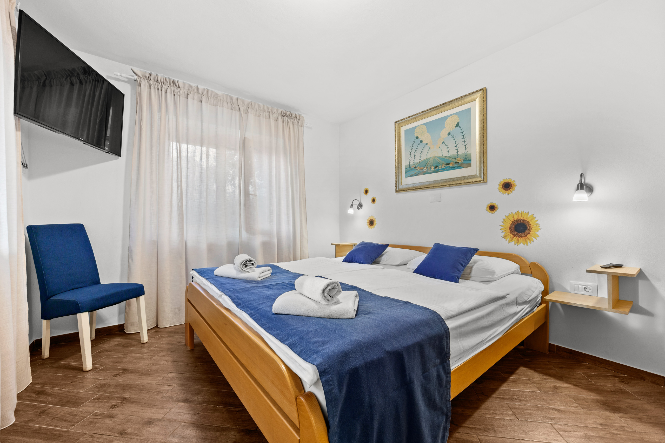 Diese Unterkunft ist am besten für Familien geeignet. Es ist ein Apartment mit drei Schlafzimmern, 2 Badezimmern (eines davon en suite), einer voll ausgestatteten Küche, einem geschmackvoll eingerichteten Wohnzimmer und einer geräumigen Terrasse (20 m2), auf der die Gäste die frische Luft und den Meerblick genießen können. Das Apartment verfügt über 2 Klimaanlagen und 3 internetfähige Fernseher.