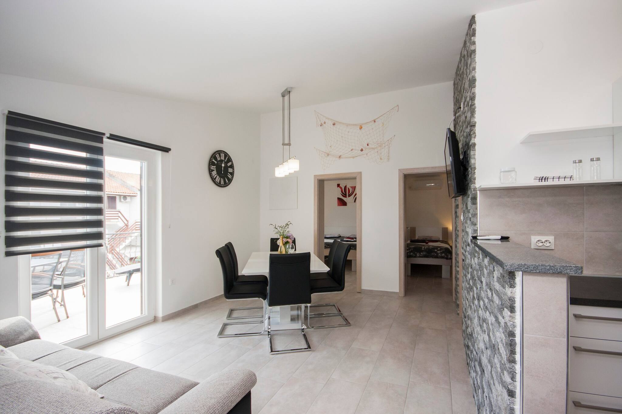 Für diejenigen, die die Umgebung erkunden möchten, liegt die Wohnung in der Nähe einer Reihe von Sehenswürdigkeiten. Der atemberaubende Nationalpark Krka und der Aquapark Biograd sind beide etwa 30-40 Minuten entfernt, während der Flughafen Zadar ca. 55 km entfernt ist.