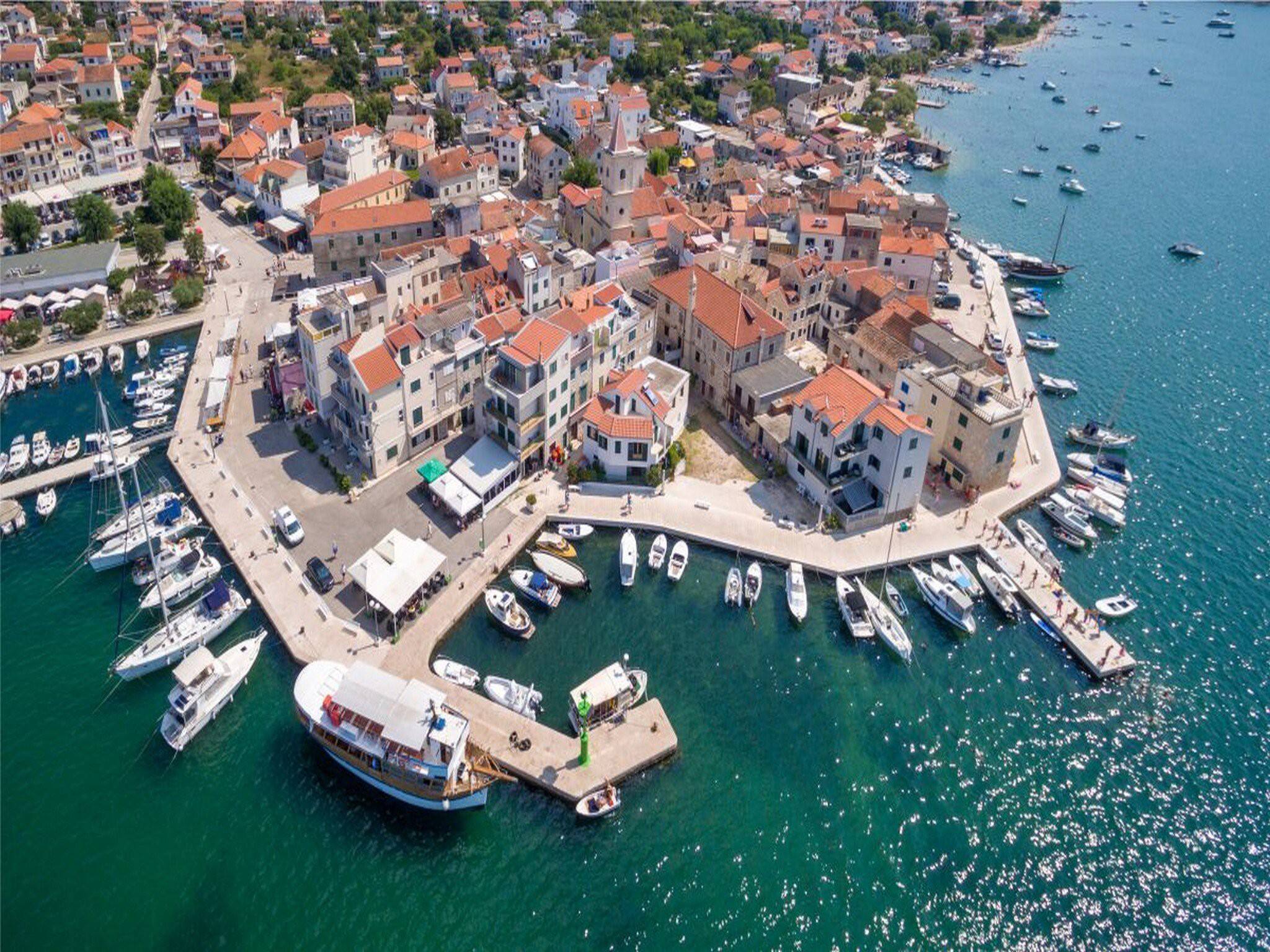 Für diejenigen, die weiter in die Ferne reisen möchten, liegt der Flughafen Zadar etwa 55 Kilometer entfernt, während der Aquapark Biograd, der Nationalpark Krka und der Vrana-See alle in erreichbarer Nähe liegen und eine Fülle an natürlicher Schönheit und Freizeitmöglichkeiten bieten.