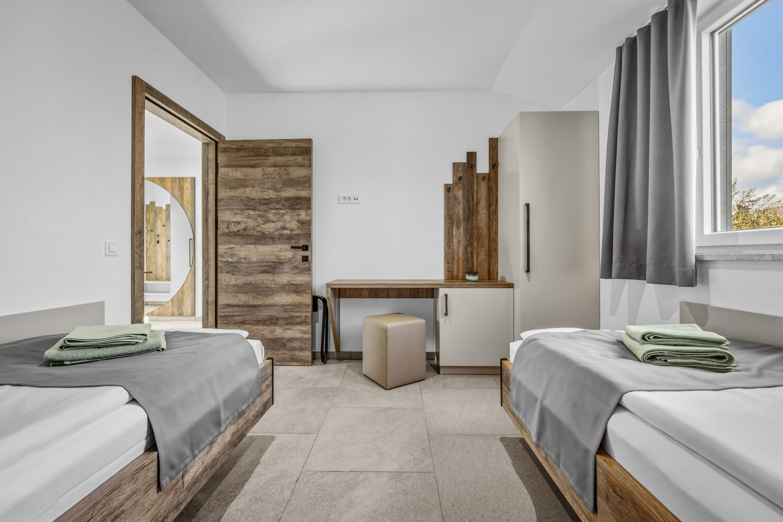 Die Küche ist vollständig ausgestattet und ideal zum Zubereiten von Mahlzeiten, sei es ein schnelles Frühstück oder ein entspanntes Abendessen zusammen. Draußen können Sie den privaten Gartenbereich genießen und den Grill für lange, gemütliche Abende am Pool nutzen.