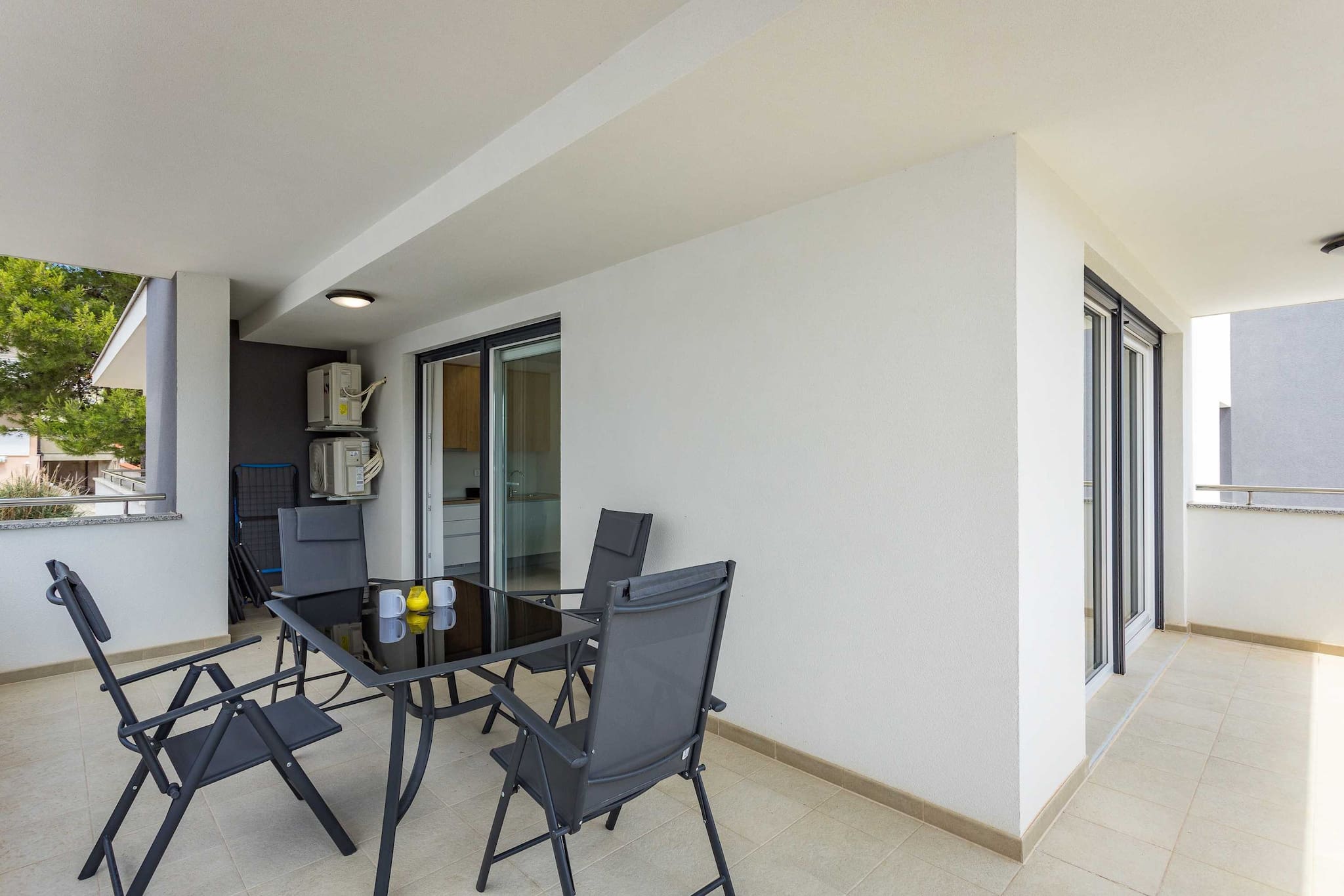 Das Apartment Oleander befindet sich im zweiten Stock des Gebäudes. Der private Balkon hat Blick auf den Kiefernwald/Park und bietet einen teilweisen Meerblick. Das Apartment ist neu eingerichtet und hell. Es besteht aus einem offenen Wohnzimmer mit Küchen-/Essbereich, zwei Schlafzimmern, einem Badezimmer und einer Terrasse. Beide Schlafzimmer sind mit Doppelbetten (160x200) ausgestattet und haben jeweils eine Klimaanlage.