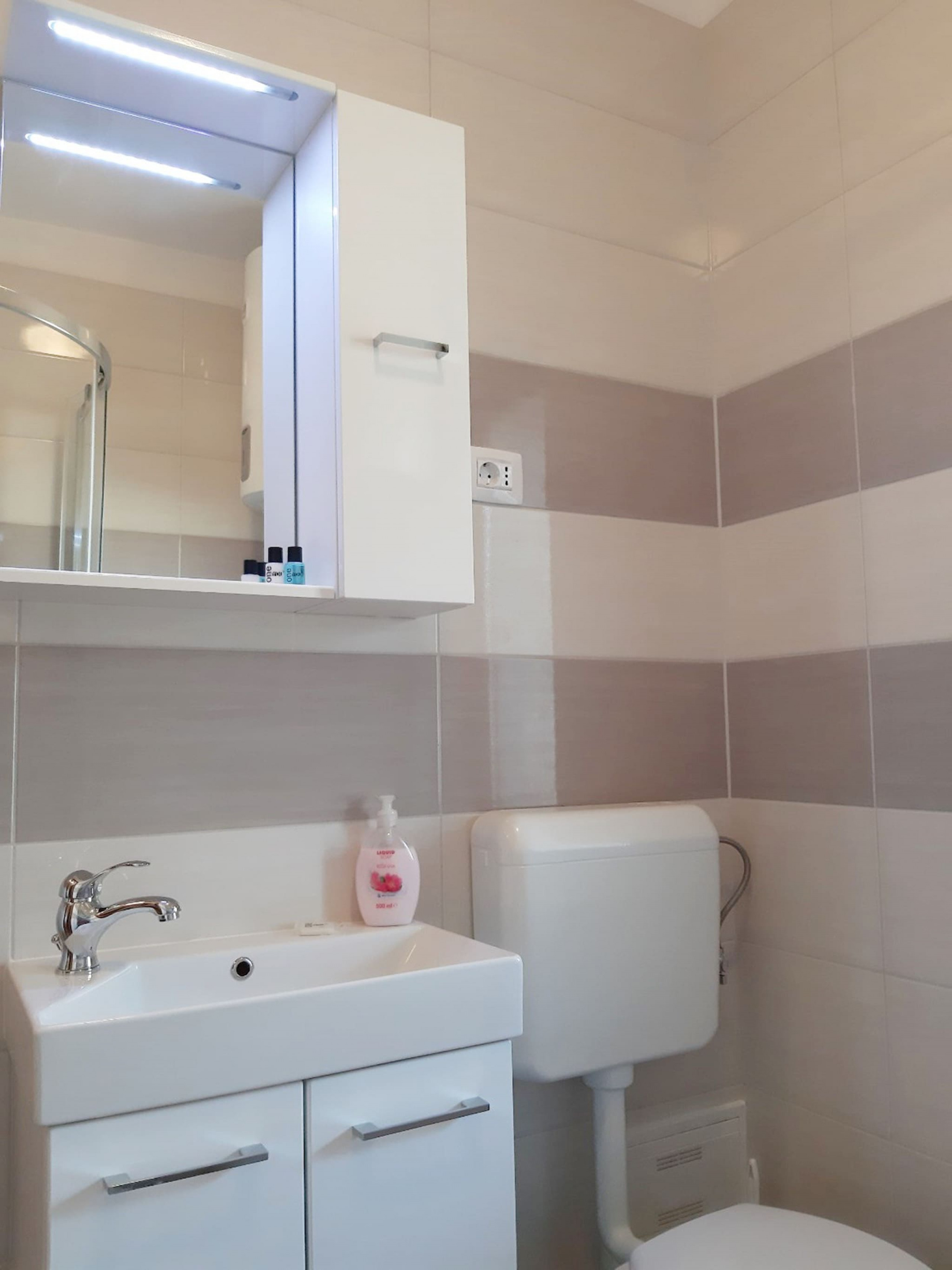 Die Apartments Mare liegen nur 100 Meter vom Meer entfernt. Der nächstgelegene Kiesstrand ist Gortanova Uvala, der sich sehr gut für Familien mit Kindern eignet. Alles, was Sie sonst noch benötigen, ist zu Fuß erreichbar. Bars, Restaurants und Lebensmittelgeschäfte finden Sie im Umkreis von 150 m. Das Fitnessstudio liegt etwa 250 m von den Apartments entfernt und das Einkaufszentrum Max City Stoja erreichen Sie nach etwa 1 km.