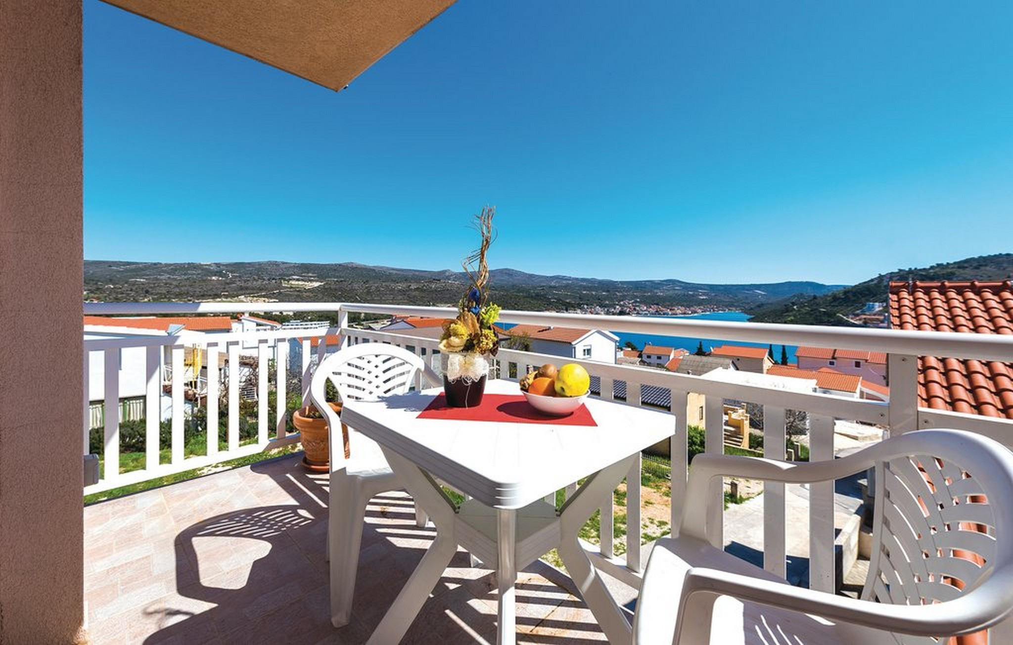 Genießen Sie den mediterranen Lebensstil mit einer Terrasse, auf der Sie sich entspannen und die atemberaubenden Meeresblicke genießen können. Die Wohnung verfügt über Klimaanlage, um Sie an warmen Sommertagen kühl zu halten, und kostenloses WLAN sorgt dafür, dass Sie während Ihres Aufenthalts verbunden bleiben.