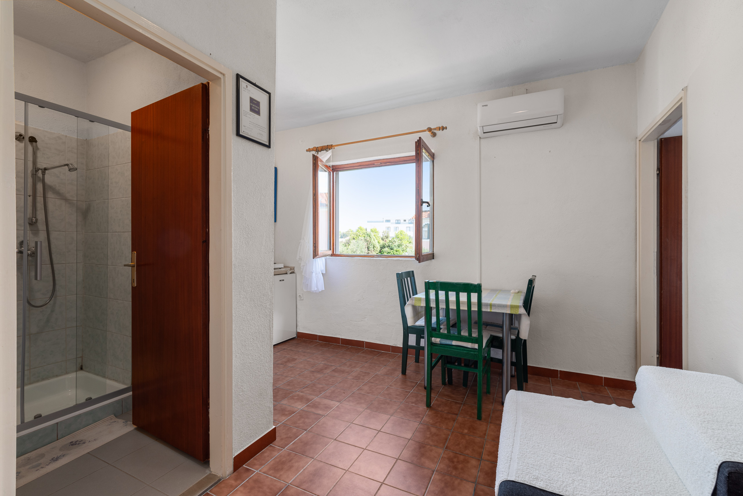 Die Ferienwohnung in Šibenik-Brodarica verfügt über 1 Schlafzimmer und hat eine Kapazität für 3 Person(en). Die schicke und geräumige Unterkunft verfügt über 24 m² und verfügt über eine tolle Aussicht auf den Garten. Die Unterkunft befindet sich 300 m vom "Caffe Bar Big Blue" entfernt, 600 m vom Supermarkt "Djelo Market", 800 m vom zum Sandstrand "Rezalište Beach", 800 m vom Kiesstrand "Rezalište Beach", 900 m vom "Restaurant Riva", 3 km vom Wasserpark "Aquapark Dalmatia", 6 km vom "Main Hospital Šibenik", 7 km von der Stadt "Old Town Šibenik", 15 km vom "Krka", 15 km vom "National Park Krka", 28 km vom "Lake Dragon's Eye", 53 km vom Flughafen "Split Airport", 53 km vom "Split Airport", in einer idealen Umgebung für Familien und am Meer.Die Unterkunft verfügt über einen Garten, Gartenmöbel, einen Grillplatz, ein Internetanschluss (WLAN), ein Föhn, ein Balkon, eine Klimaanlage, einen Parkplatz im Freien auf dem Grundstück, 1 Fernseher.Die Offene Küche mit elektrisches Kochfeld ist ausgestattet in einen Kühlschrank, Geschirr/Besteck, Kochutensilien, einen Wasserkocher und Herdplatte.7 Bewertungen