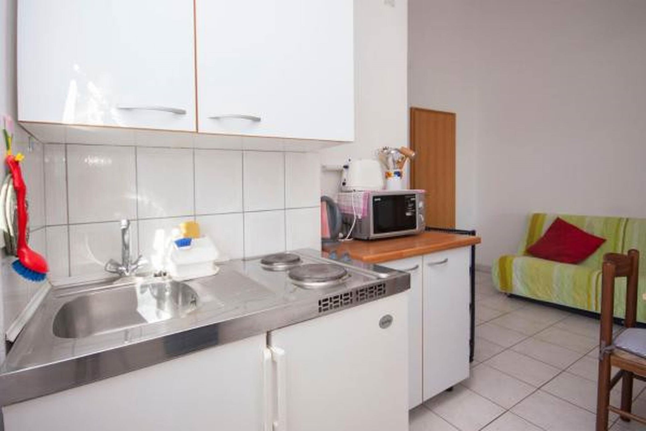 Diese charmante Einzimmerwohnung bietet Platz für 2 Erwachsene und ein Baby. Die Wohnung verfügt über eine Küchenzeile mit Herd, Kühlschrank, Wasserkocher und Küchenutensilien. Der gemütliche Wohnbereich ist mit einem Schlafsofa und einem Esstisch ausgestattet. Das Schlafzimmer ist mit einem Kingsize-Bett ausgestattet, das einen erholsamen Schlaf garantiert. Es gibt auch ein Badezimmer mit Dusche und einen Balkon mit Gartenmöbeln und Meerblick.