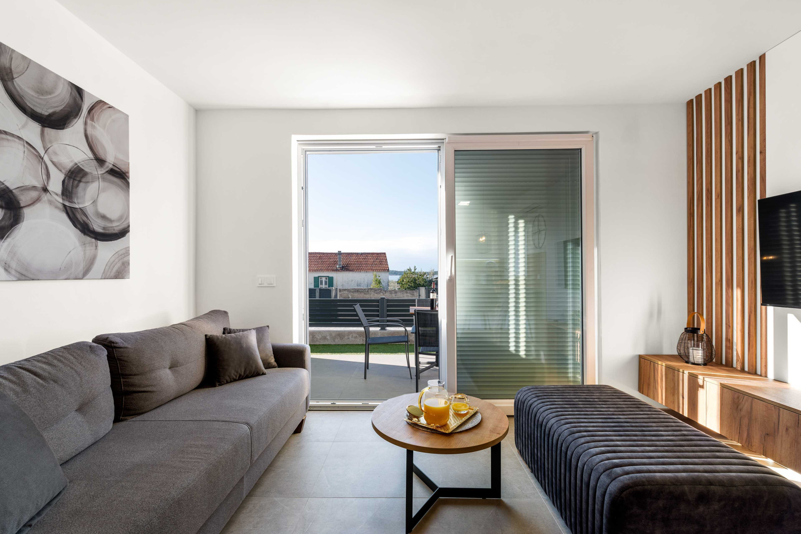 Nur 200 Meter vom Strand entfernt, bietet diese Wohnung einen einfachen Zugang zur atemberaubenden Adriaküste. Erkunden Sie die charmante Altstadt von Šibenik, den nahe gelegenen Aquapark Dalmatia und den Krka-Nationalpark.