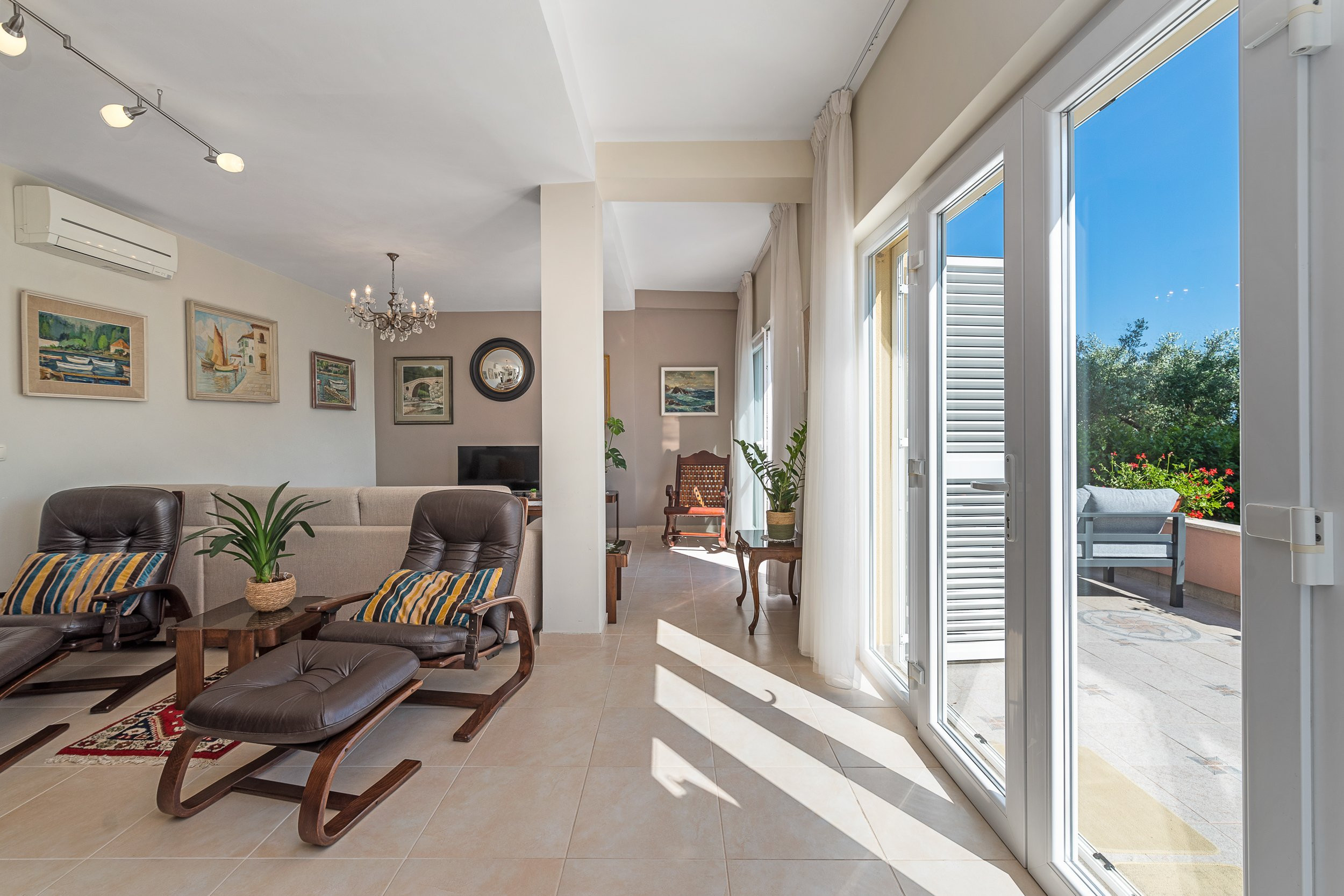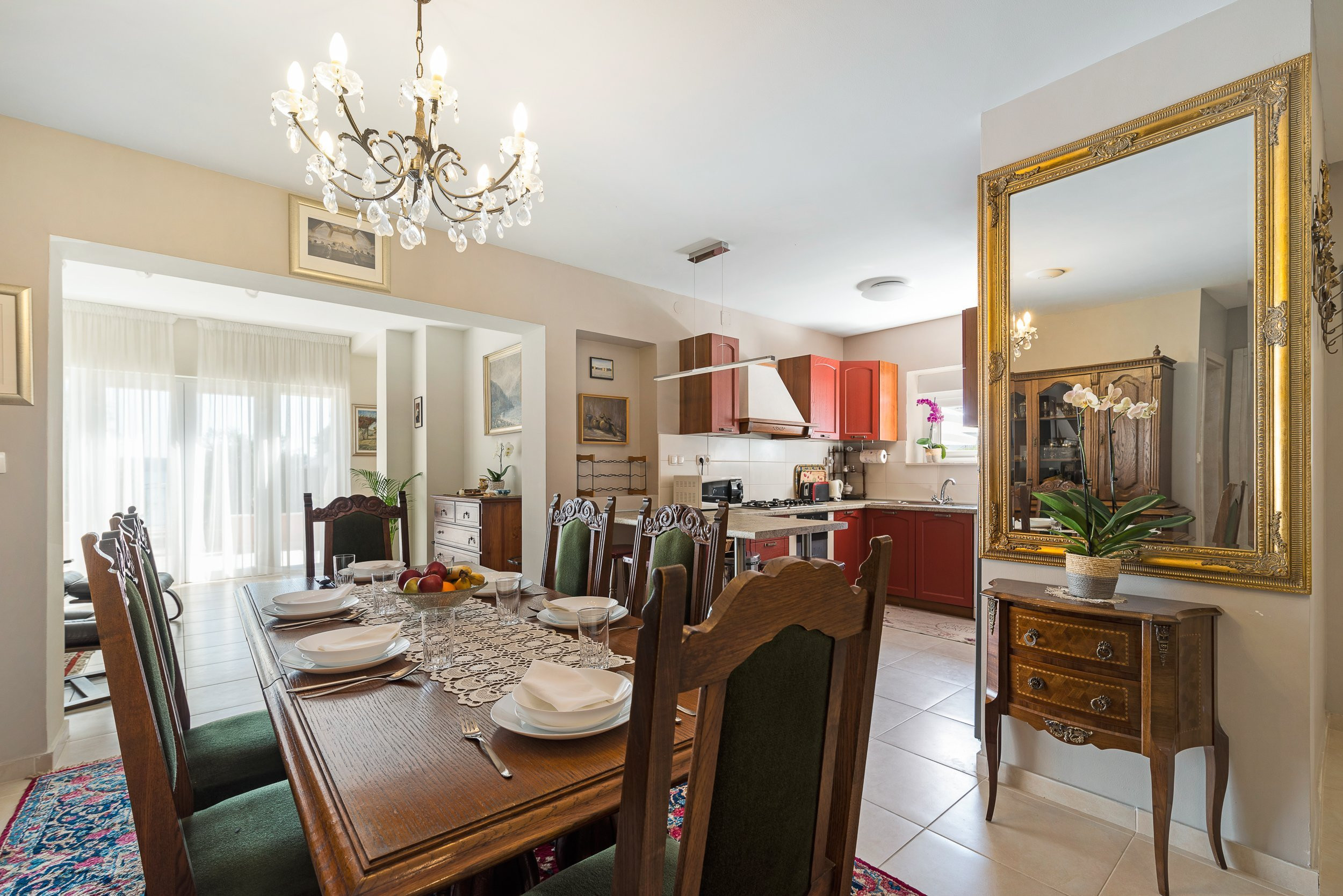 Ferienwohnung Villa Carmen bietet einen entzückenden Meeraufenthalt in dem charmanten Küstendorf Sukošan. Diese geräumige 100 Quadratmeter große Immobilie bietet komfortable Unterkunft für bis zu 6 Erwachsene und 2 Kinder und verfügt über 3 Schlafzimmer mit flexiblen Schlafmöglichkeiten, einschließlich eines Kingsize-, eines Queensize-, eines Doppelsofa- und zwei Einzelbetten.
