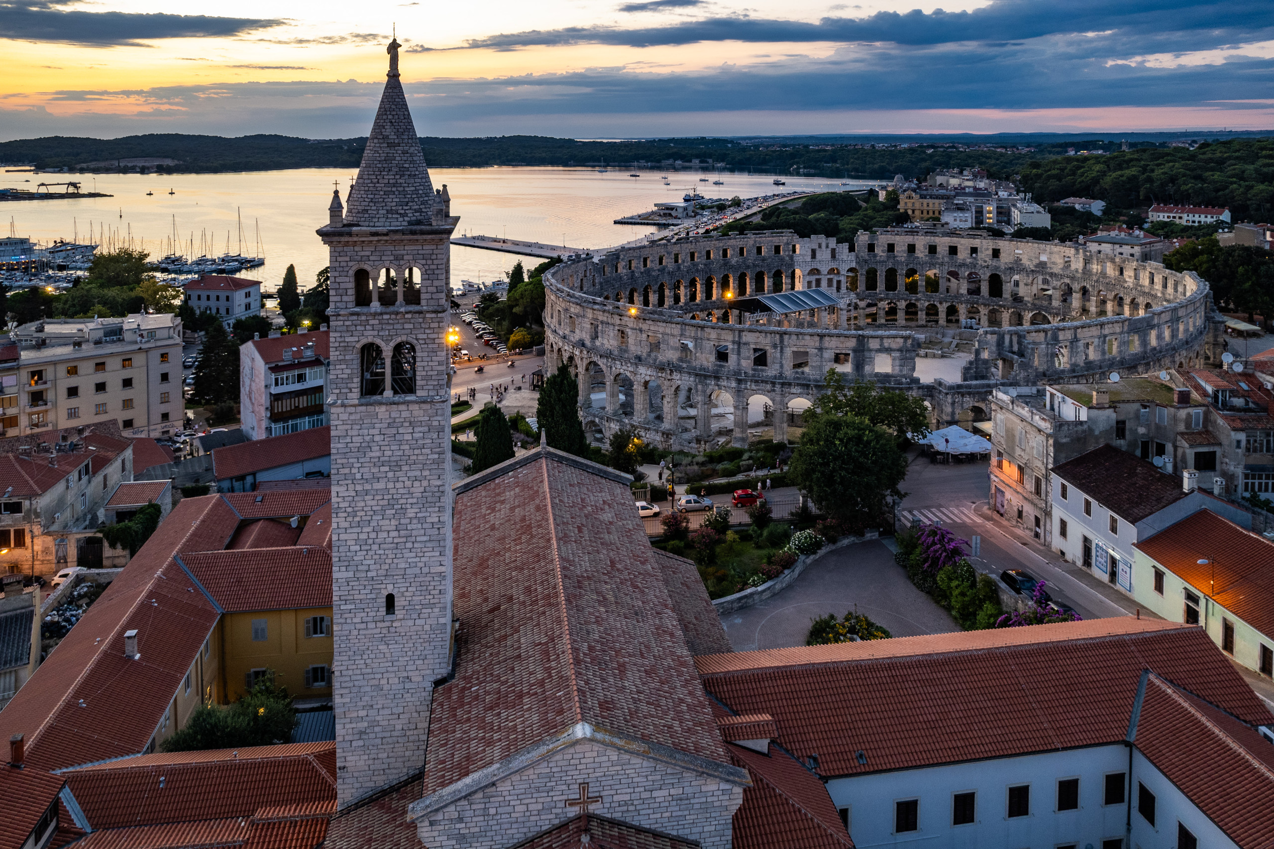 In der Stadt gibt es viele antike römische Denkmäler, darunter den Triumphbogen des Sergius, den Augustus-Tempel und natürlich das Amphitheater.