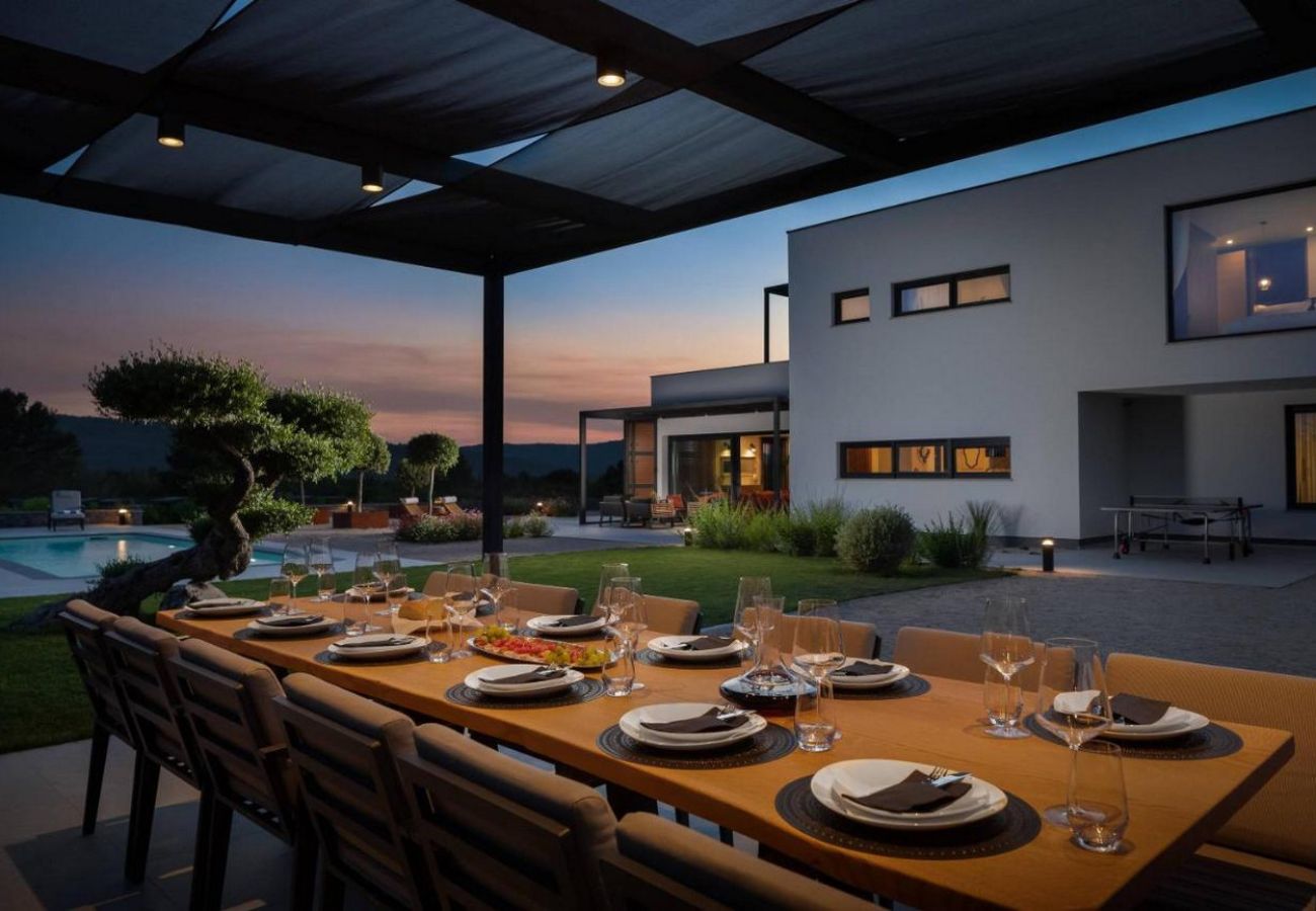 Die Unterkunft verfügt über einen Garten, Gartenmöbel, ein umzäuntes Grundstück, Terrasse 70 m², eine Waschmaschine, einen Trockner, einen Grillplatz, einen Kamin, ein Bügeleisen/-brett, einen Zimmersafe, ein Internetanschluss (WLAN), ein Föhn, ein Balkon, ein Kinderbereich, ein Tennisplatz, ein Fitnessraum, eine Sauna, ein Whirlpool, eine Wärmepumpe, eine Klimaanlage in der ganzen Unterkunft, einen klimatisierter Privatpool, einen Parkplatz im Freien (6 Stellplätze) auf dem Grundstück, ein elektronische Mückenschutzgeräte, Moskitonetze in gesamten Unterkunft, ein Fernsehgeräte, Satelliten-TV (in den folgenden Sprache(n): Englisch, Deutsch), einen DVD-Player.