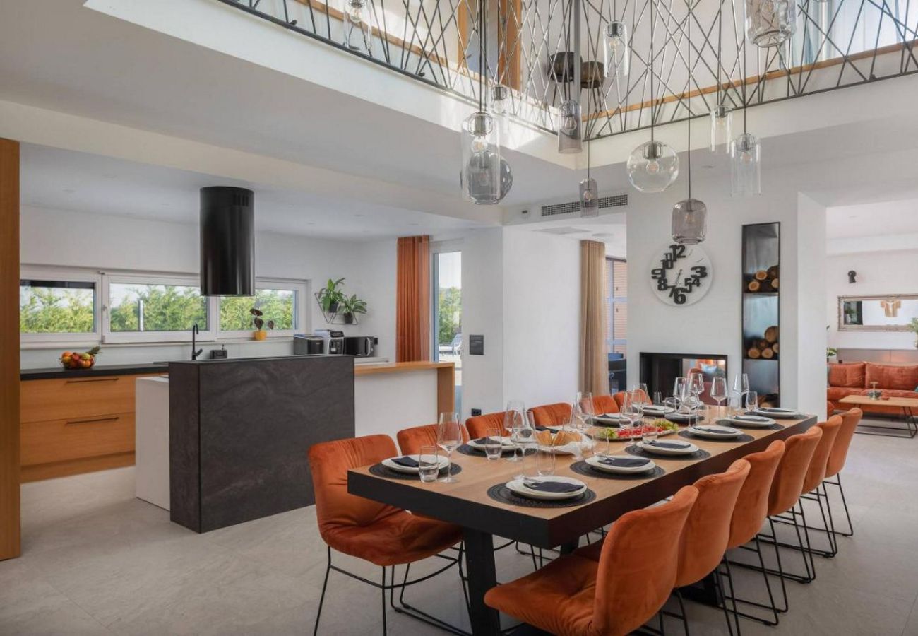 Die bequeme und moderne Unterkunft verfügt über 350 m² und verfügt über eine tolle Aussicht auf den Garten und den Pool.