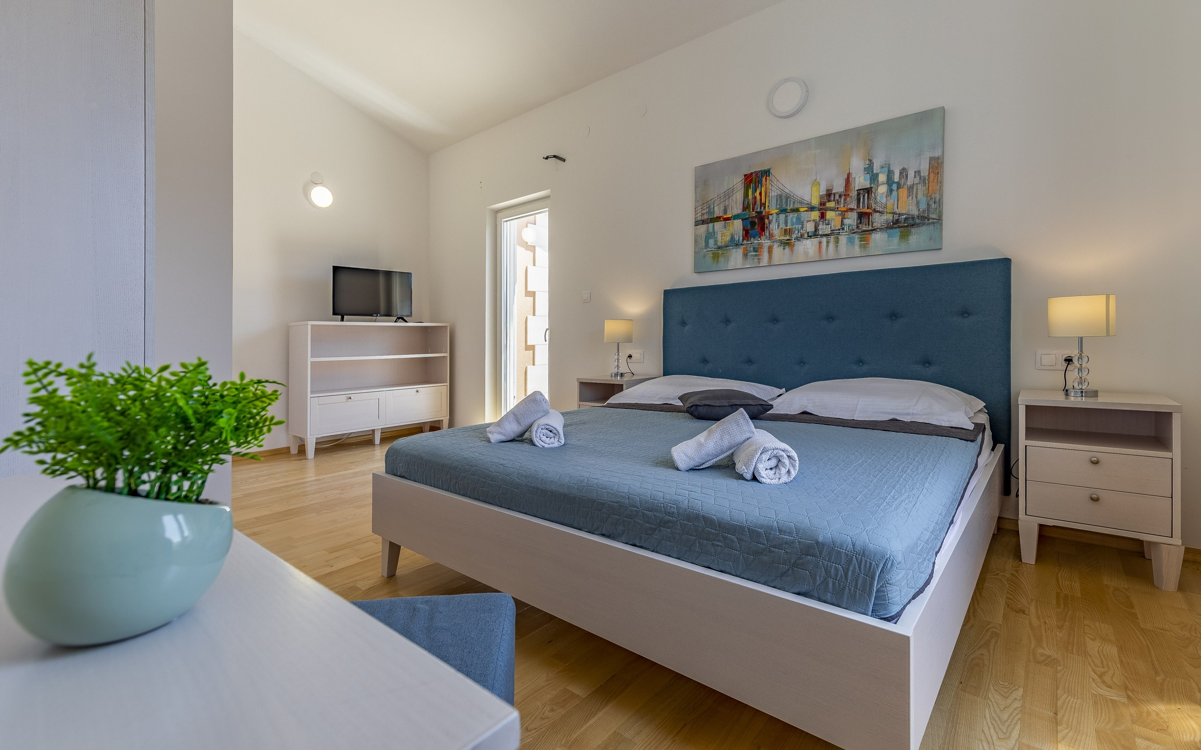 Die Villa Nur Amela ist insgesamt für 10 Personen geeignet. Es gibt 4 Schlafzimmer mit Doppelbetten sowie ein ausziehbares Sofa im Wohnzimmer, das sich bestens für 2 Kinder eignet.