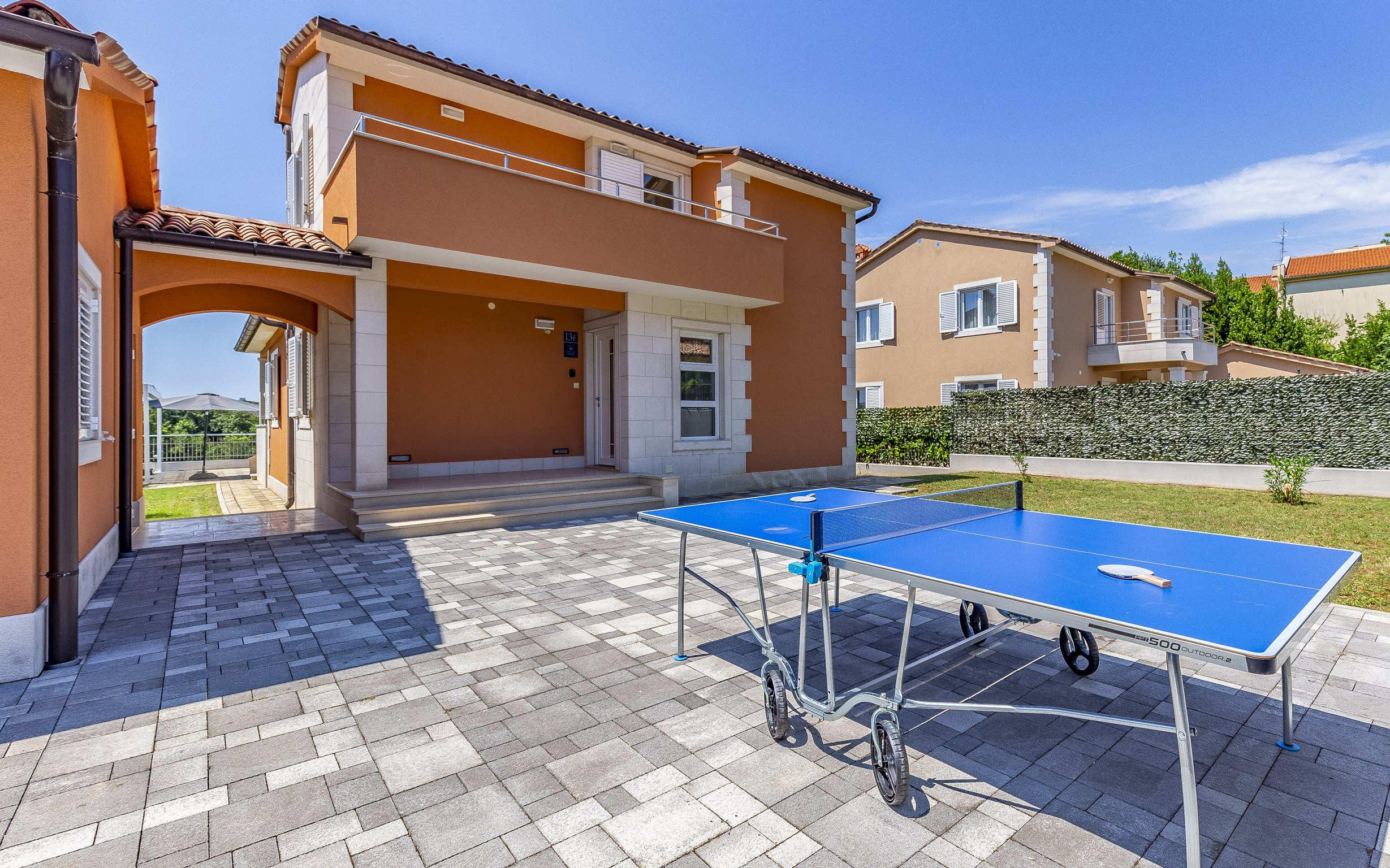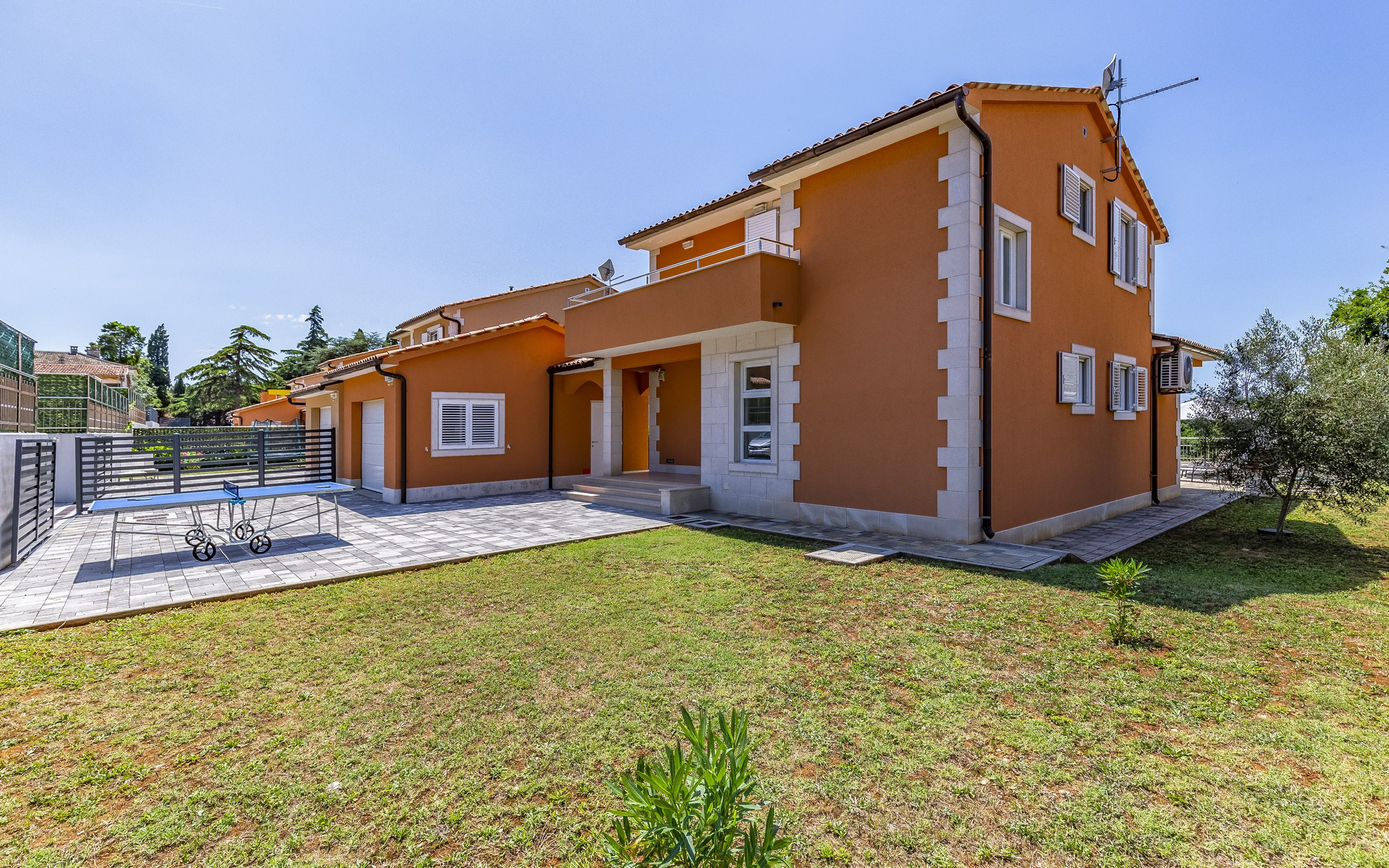 Neben der Hauptterrasse mit Blick auf den Poolbereich bietet die Villa einen zusätzlichen Balkon an der Eingangsseite des Hauses, der eine weitere ruhige Ecke zum Genießen des Morgenkaffees oder der Abendbrise schafft.