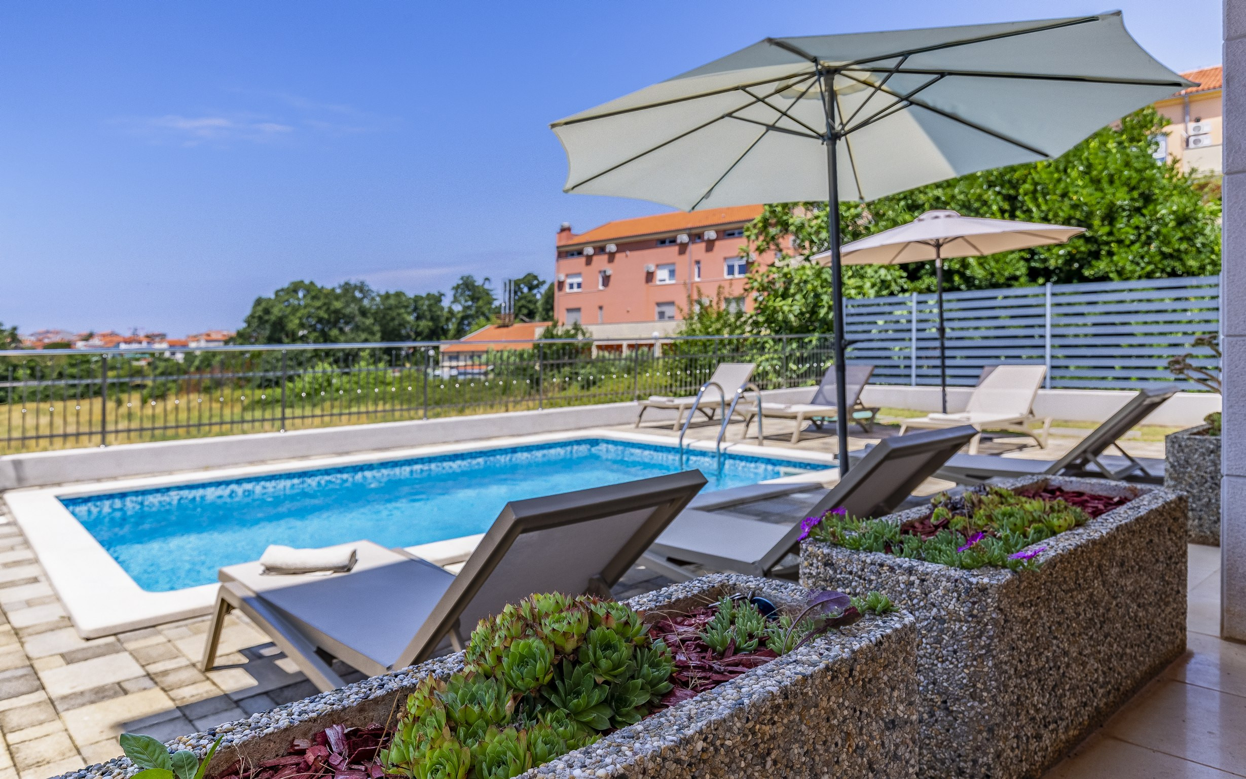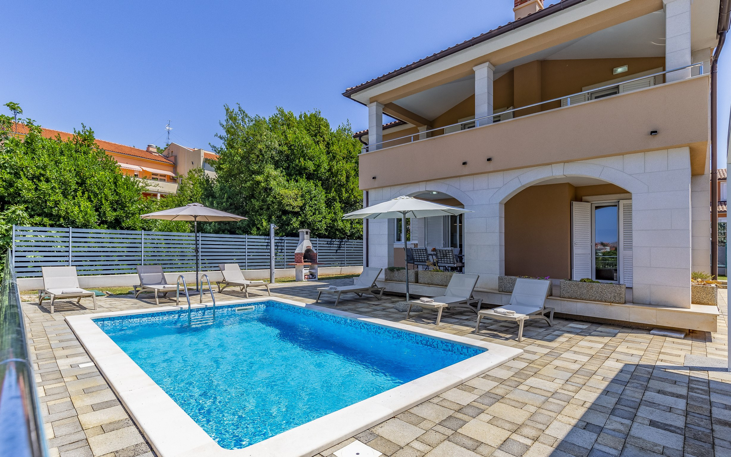 Innerhalb eines exklusiven Anwesens in Pula befindet sich diese elegante Villa mit vier Schlafzimmern, die großzügigen Platz für bis zu 10 Gäste (8 Erwachsene und 2 Kinder) bietet und somit die perfekte Wahl für Großfamilien oder Freundesgruppen ist, die Wert auf Privatsphäre, Komfort und eine entspannte mediterrane Atmosphäre legen.