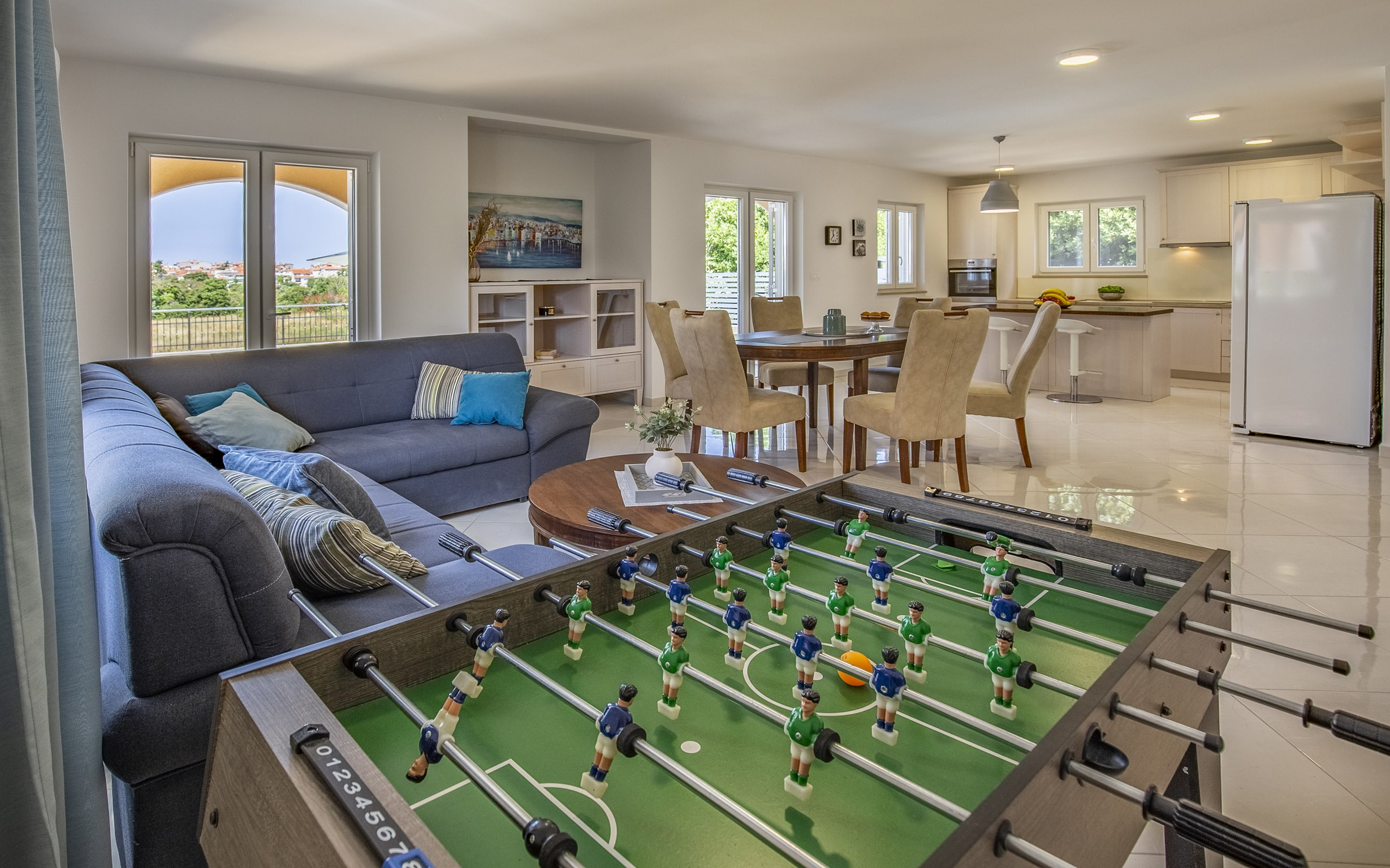 Die Villa verbindet Funktionalität und Stil, mit vier gut ausgestatteten Schlafzimmern, die erholsame Nächte gewährleisten, während der helle, offene Wohn- und Essbereich einen einladenden Raum zum Zusammenkommen und Entspannen schafft. Die voll ausgestattete Küche umfasst alle wesentlichen Geräte, Utensilien und Kochgeschirr, sodass Gäste während ihres Aufenthalts mühelos Mahlzeiten zubereiten können.