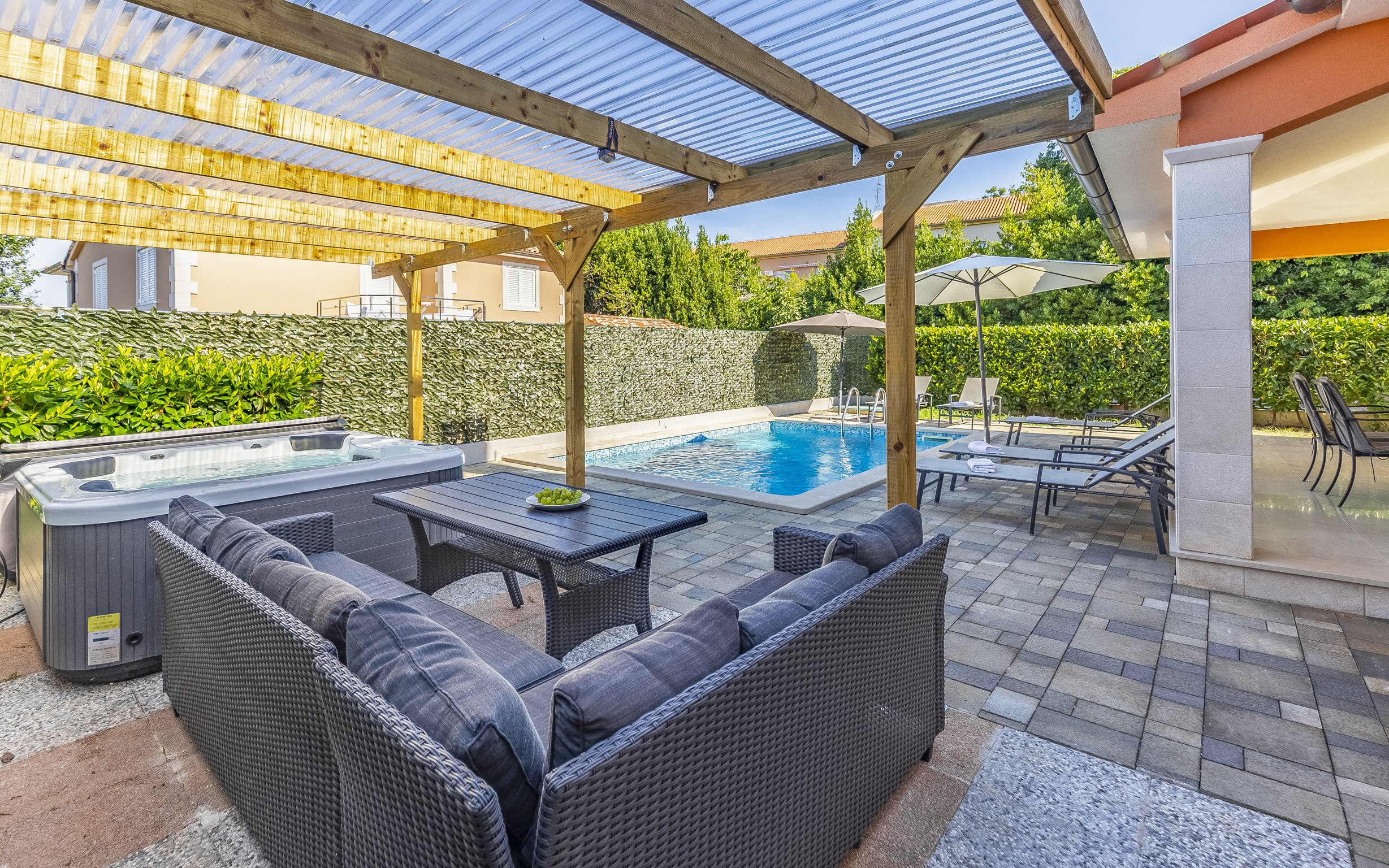 Gelegen in dem wunderschönen Pula, ist diese elegante Drei-Zimmer-Villa für Gäste konzipiert, die Privatsphäre, Komfort und eine verfeinerte mediterrane Atmosphäre suchen.