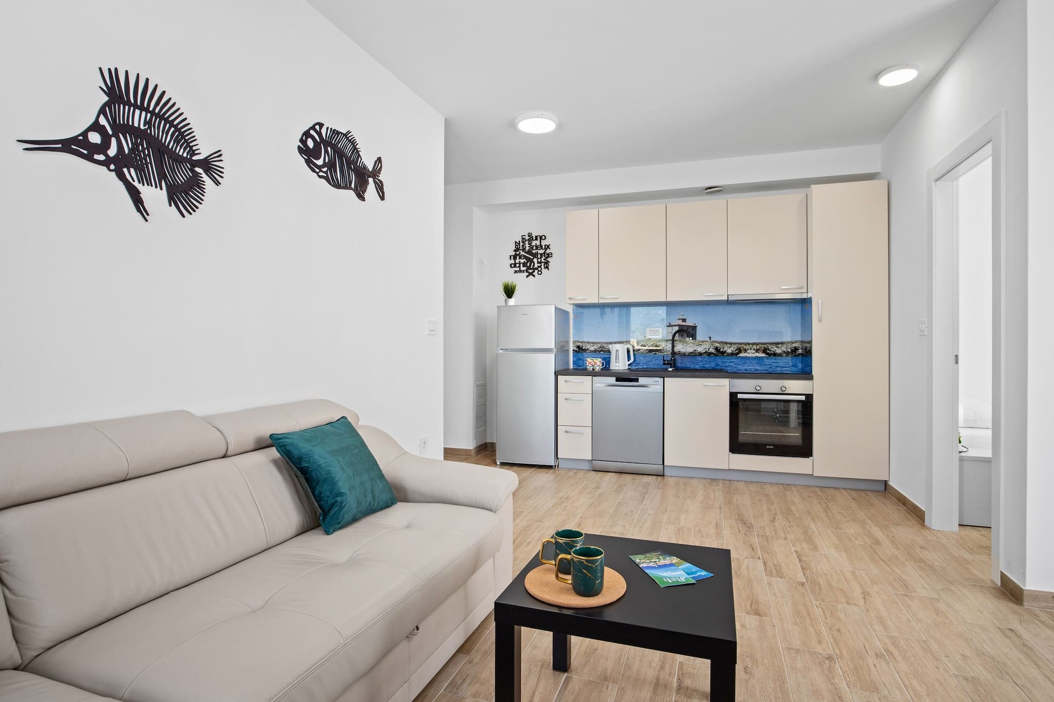 Od srca dajemo sve 10! Prekrasan apartman na odličnoj lokaciji, čist, prostran, sadrži apsolutno sve za ugodan i bezbrižan odmor. Gospođe koje vode brigu o apartmanu i s kojima smo kontaktirale iznimno ljubazne, srdačne, uvijek na usluzi! Sve pohvalesee more