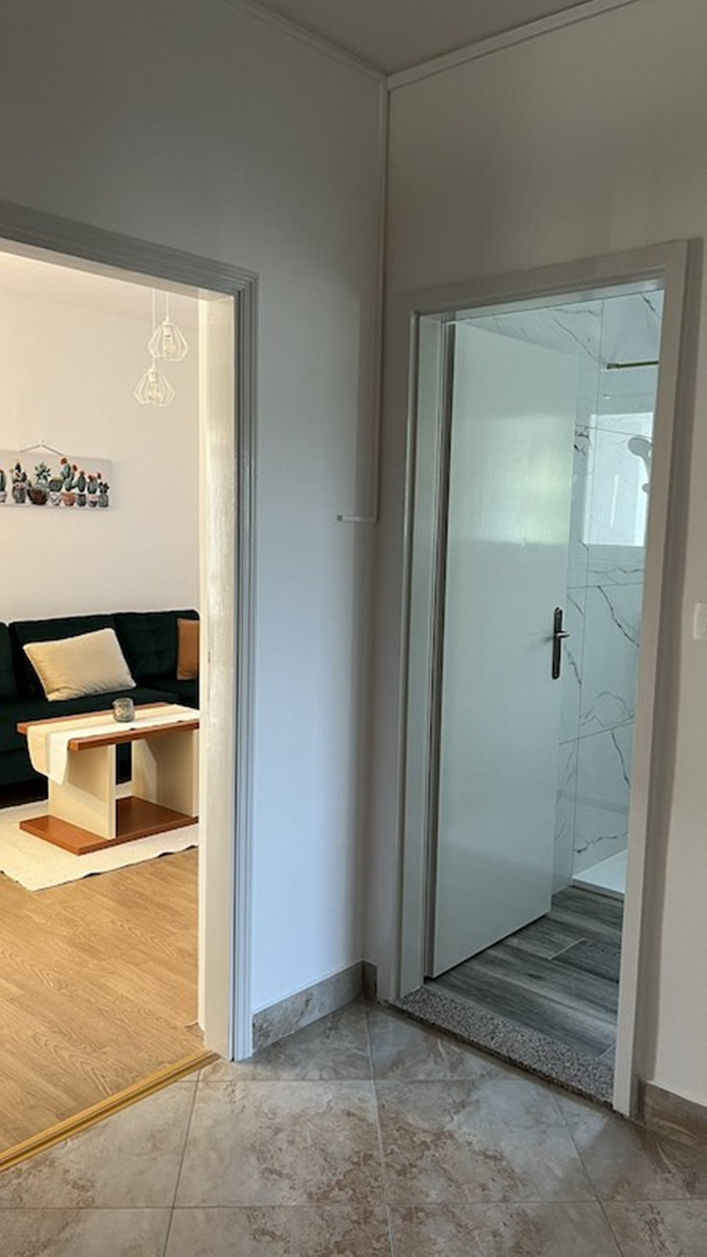 The apartment boasts two well-appointed bedrooms, accommodating up to six guests. The living room is tastefully furnished, providing a comfortable space for relaxation and quality time with loved ones.