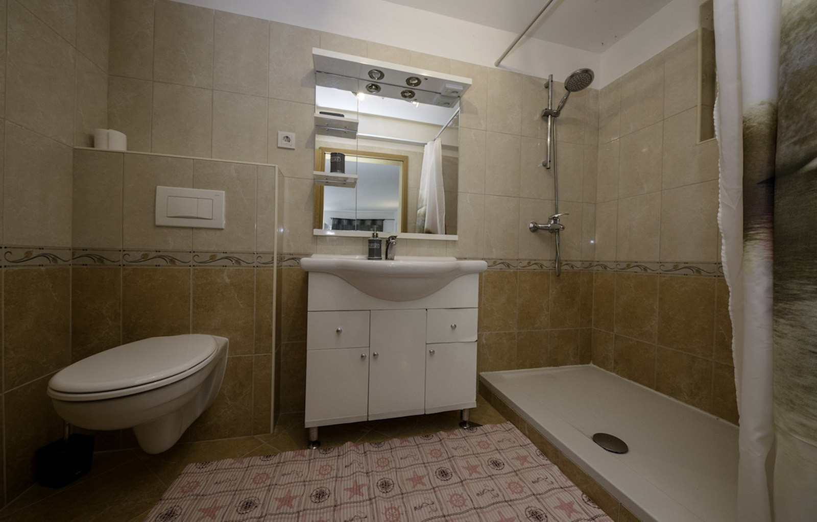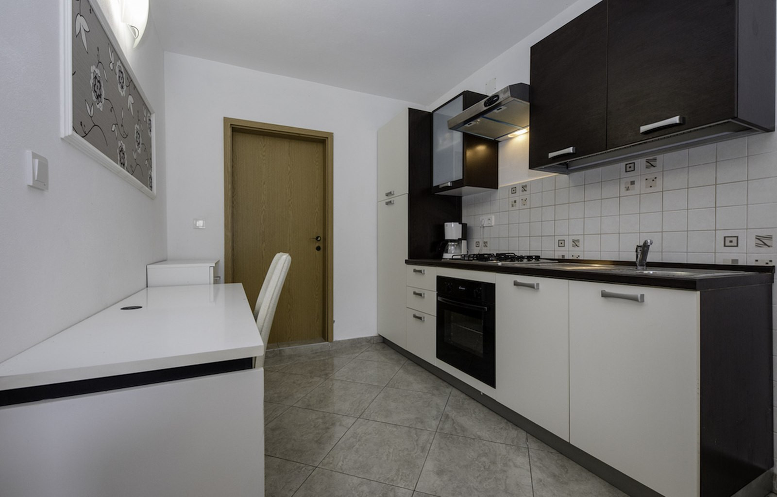 Sandy and rocky beaches, as well as a nearby restaurant, are only 50 metres away. The neighbourhood is quiet, family-friendly, and perfectly suited for a relaxed coastal stay.