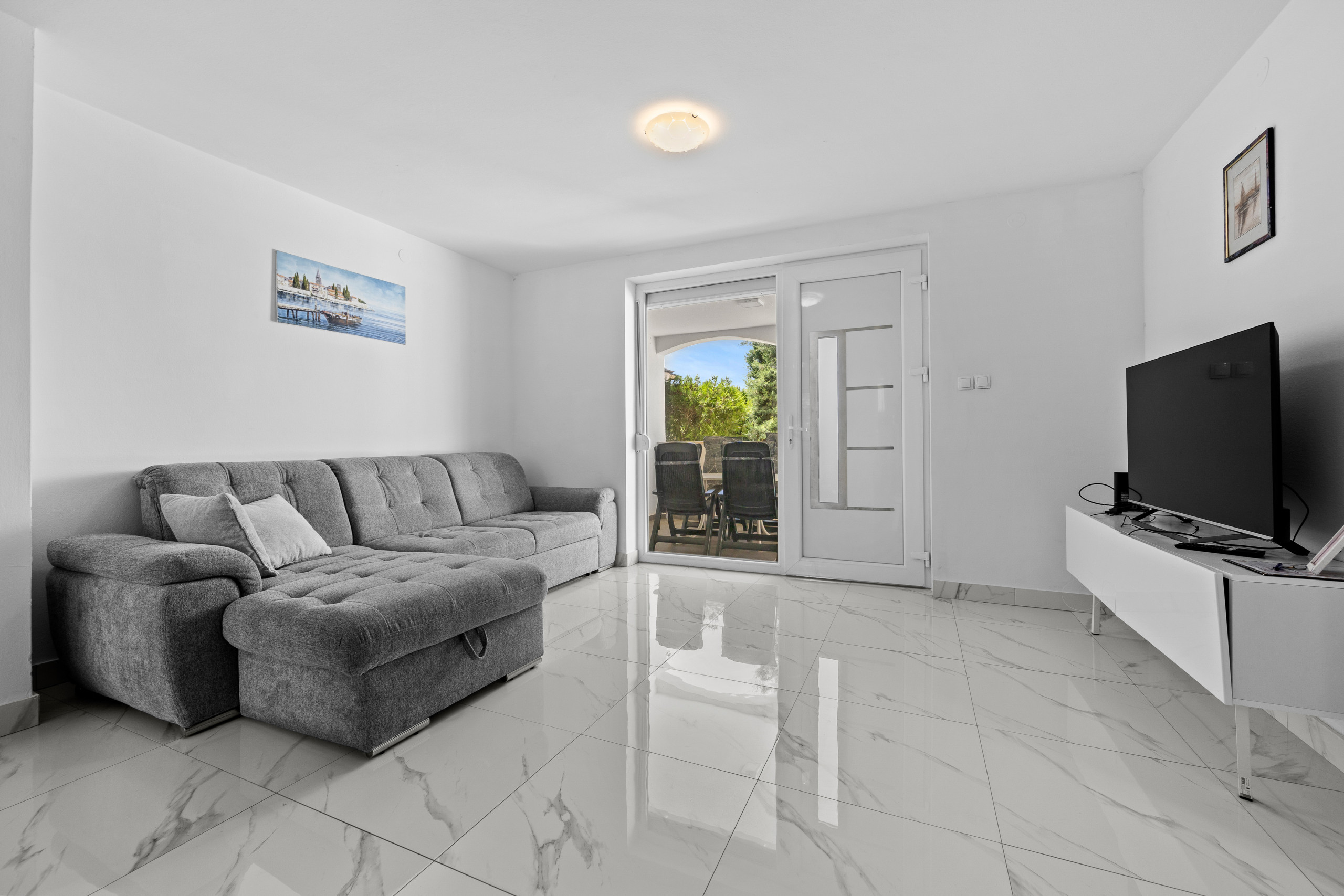 Guests can sleep in two bedrooms with king-size beds, and spend time together in the living room with a smart TV and on the terrace with garden furniture and a dining area.