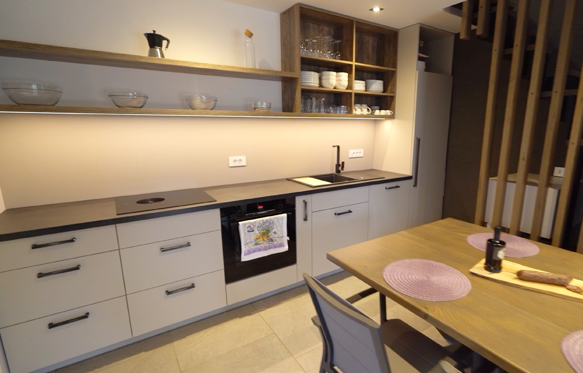 The kitchen is fully equipped and ideal for preparing meals, whether it’s a quick breakfast or a relaxed dinner together. Outside, you can enjoy the private garden area and make use of the barbecue for long, easy evenings by the pool.