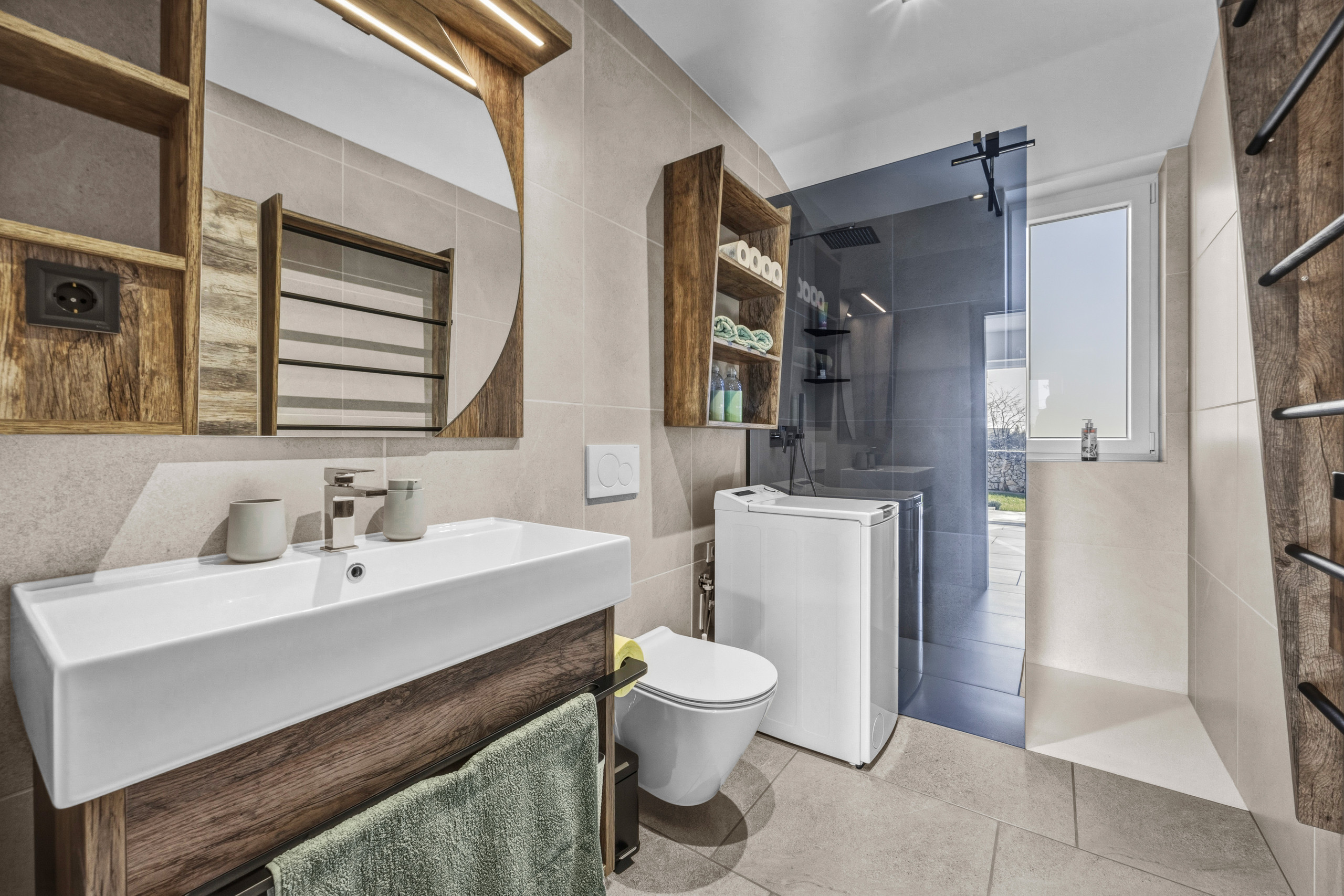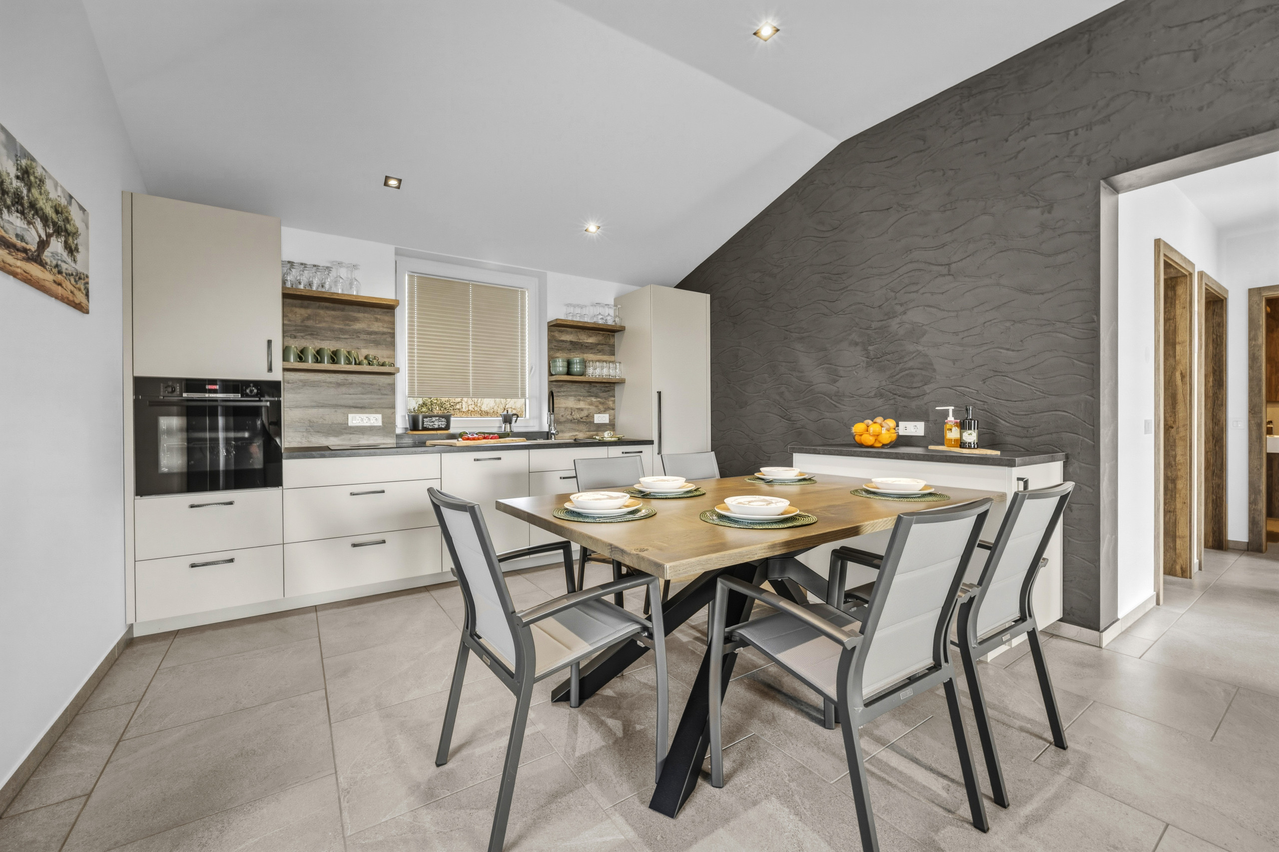 The kitchen is fully equipped and ideal for preparing meals, whether it’s a quick breakfast or a relaxed dinner together. Outside, you can enjoy the private garden area and make use of the barbecue for long, easy evenings by the pool.