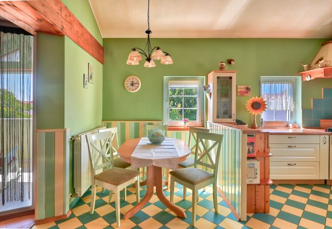 This whimiscal apartment is located in the residential area of Pula. With 142 sq meters of living space, it's a wonderful choice for families looking for comfort and peace.