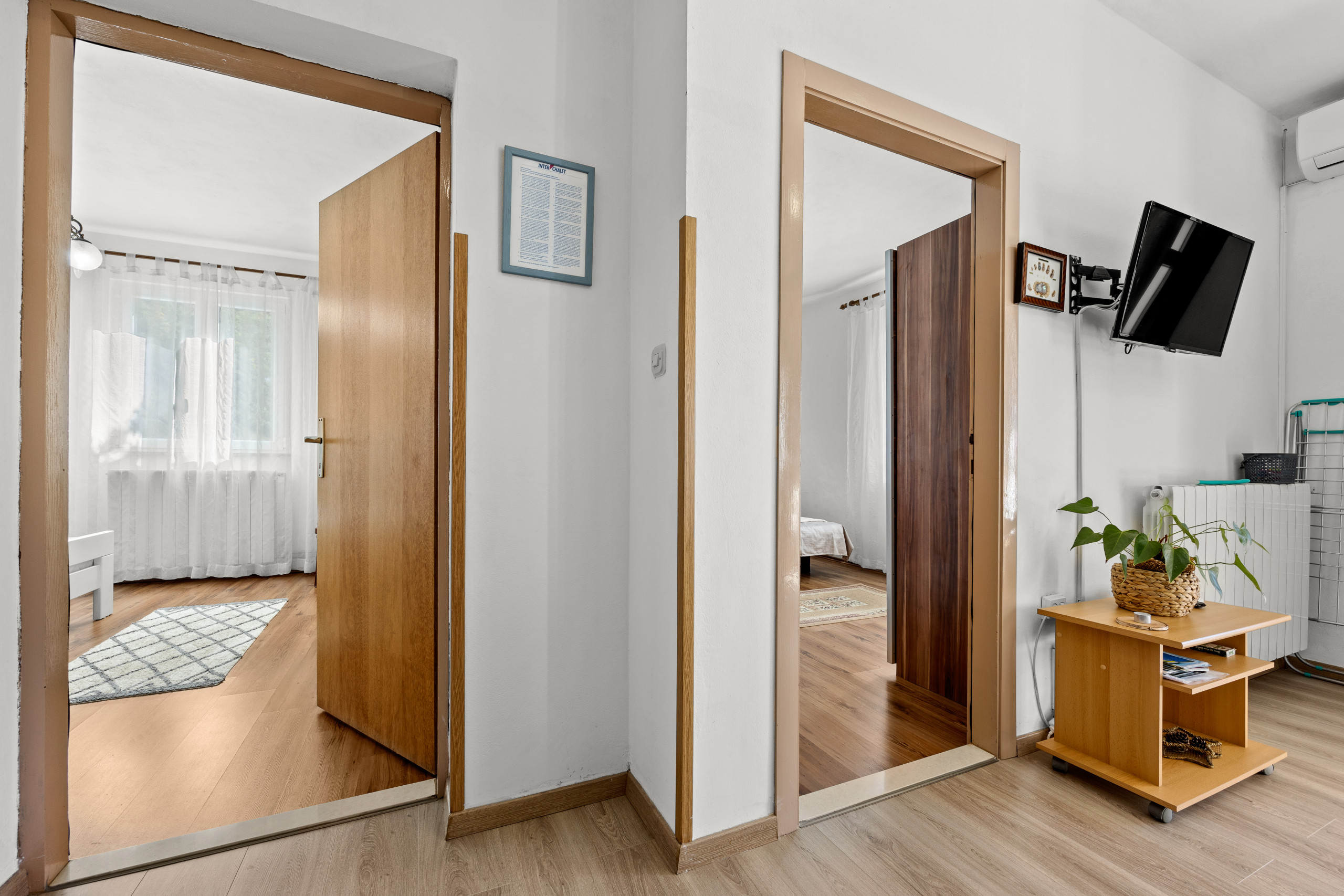 Apartment is suitable for 4 people. There are 2 bedrooms: one with a large double bed, and other one with 2 single beds (90x200 cm).