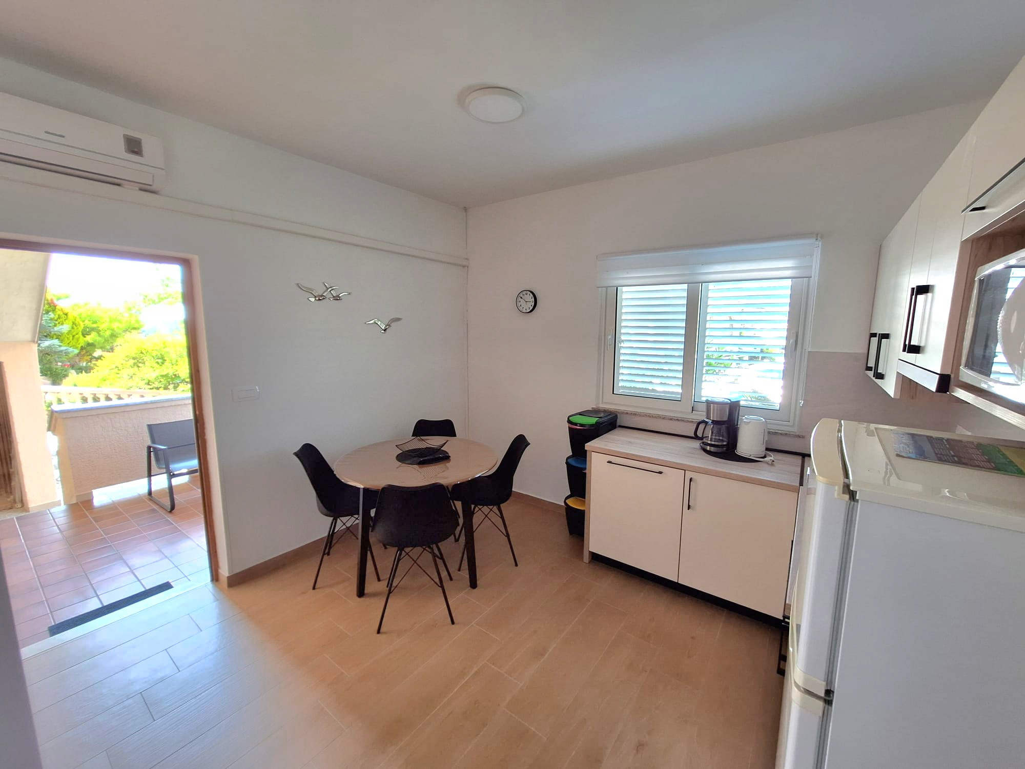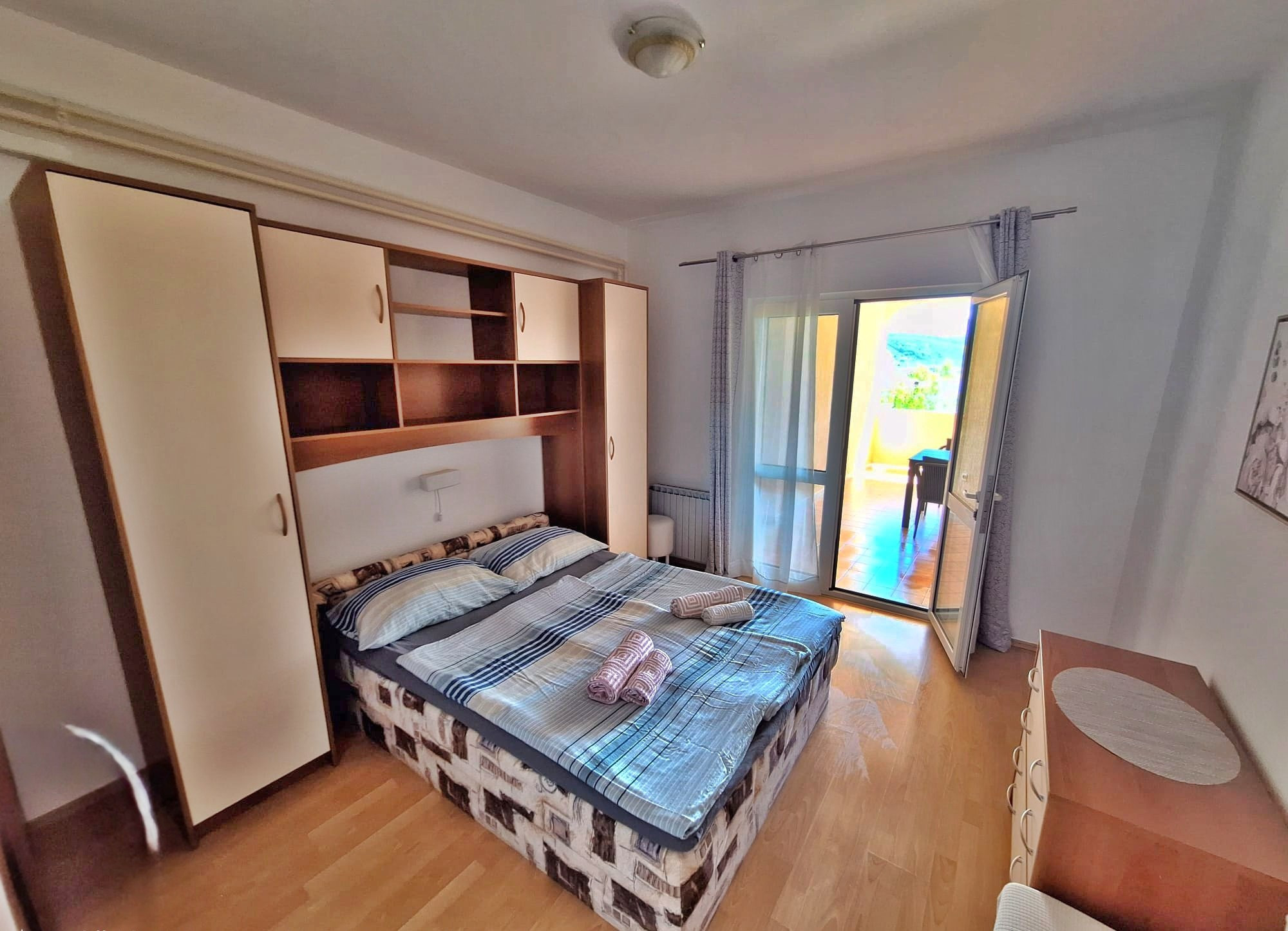 One of the highlights of the apartment is its beautiful balcony with a truly stunning view of the sea, where you can start your day with breakfast overlooking the water or unwind in the evening while watching the sunset.