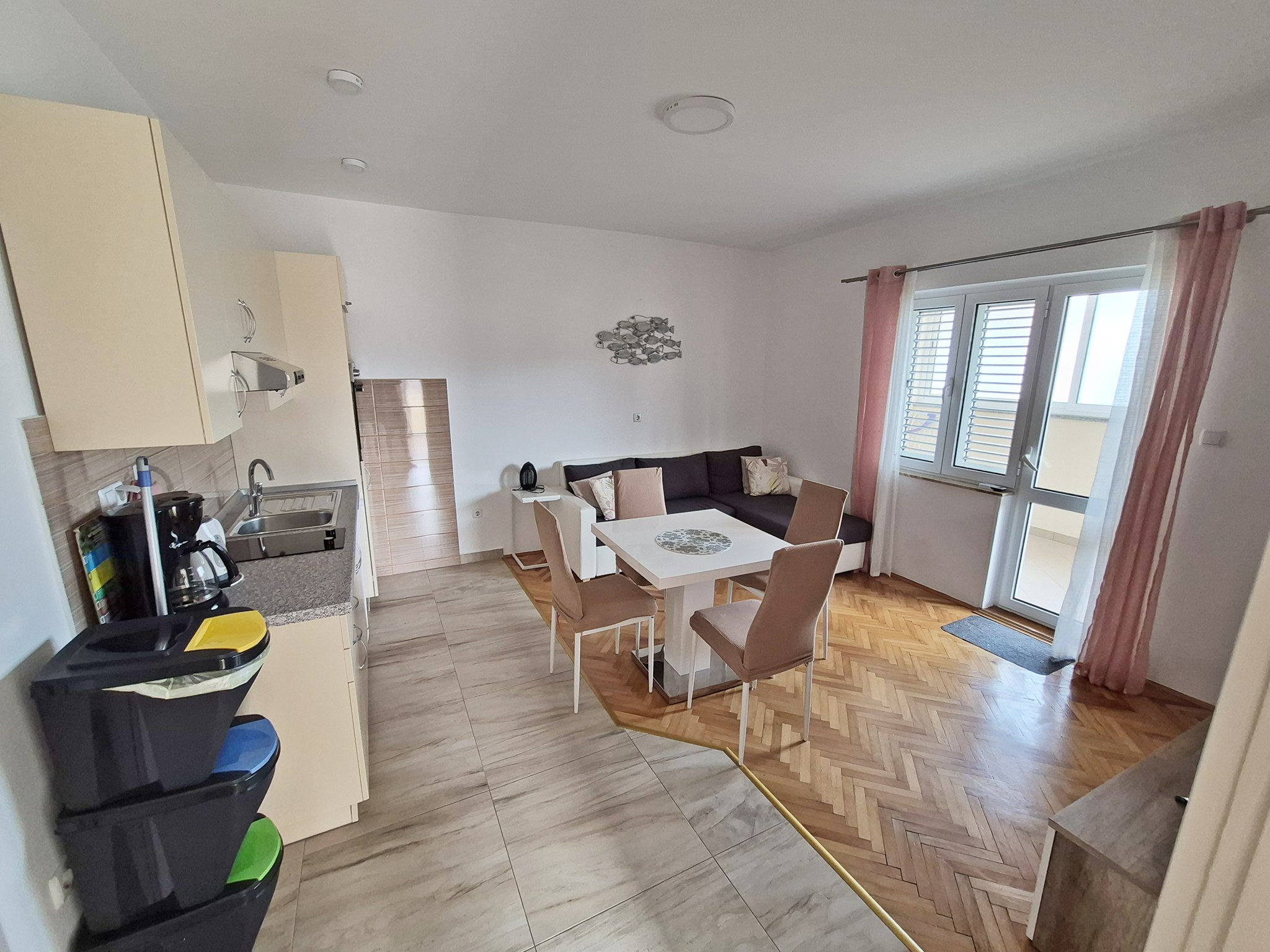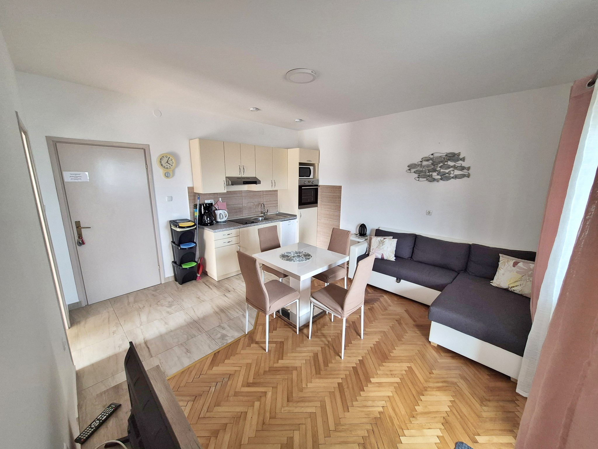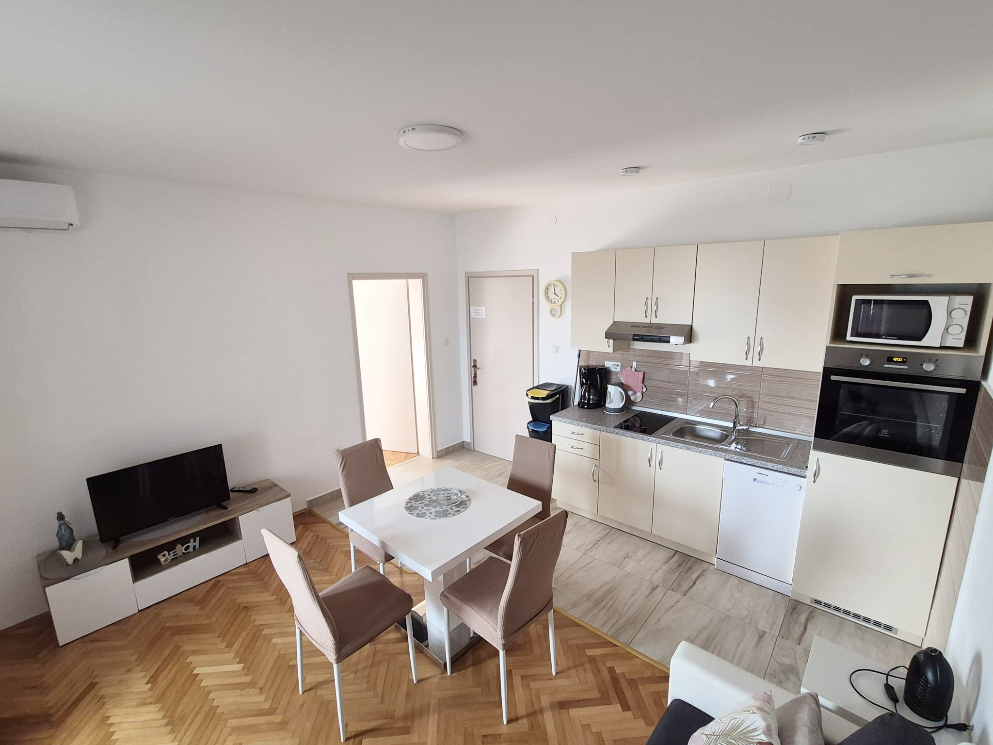 The sandy beach is only 300 meters away, and nearby you will find a storage area with sun loungers and umbrellas available for guests, making your beach visits easy and comfortable. The well-known restaurant Belvedere is just 10 meters from the property, while a bus station is 300 meters away and the Konzum supermarket is about 500 meters away. The town center and hospital are located approximately 8 km from the apartment.
