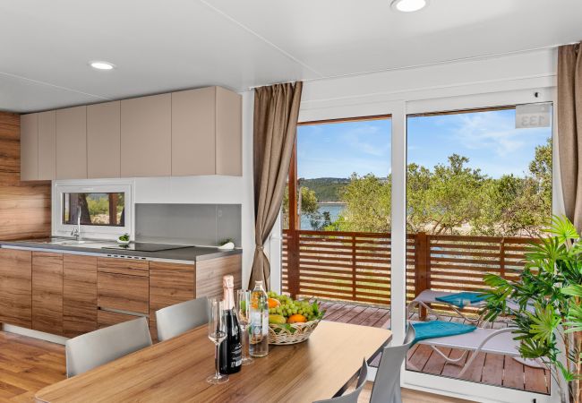 Discover a luxurious mobile home located in the picturesque coastal town of Šibenik, offering an ideal retreat for friends and couples seeking a memorable Croatian getaway. This bright and beautiful accommodation provides stunning sea views and is perfectly situated just steps away from the pristine beaches of the Adriatic.