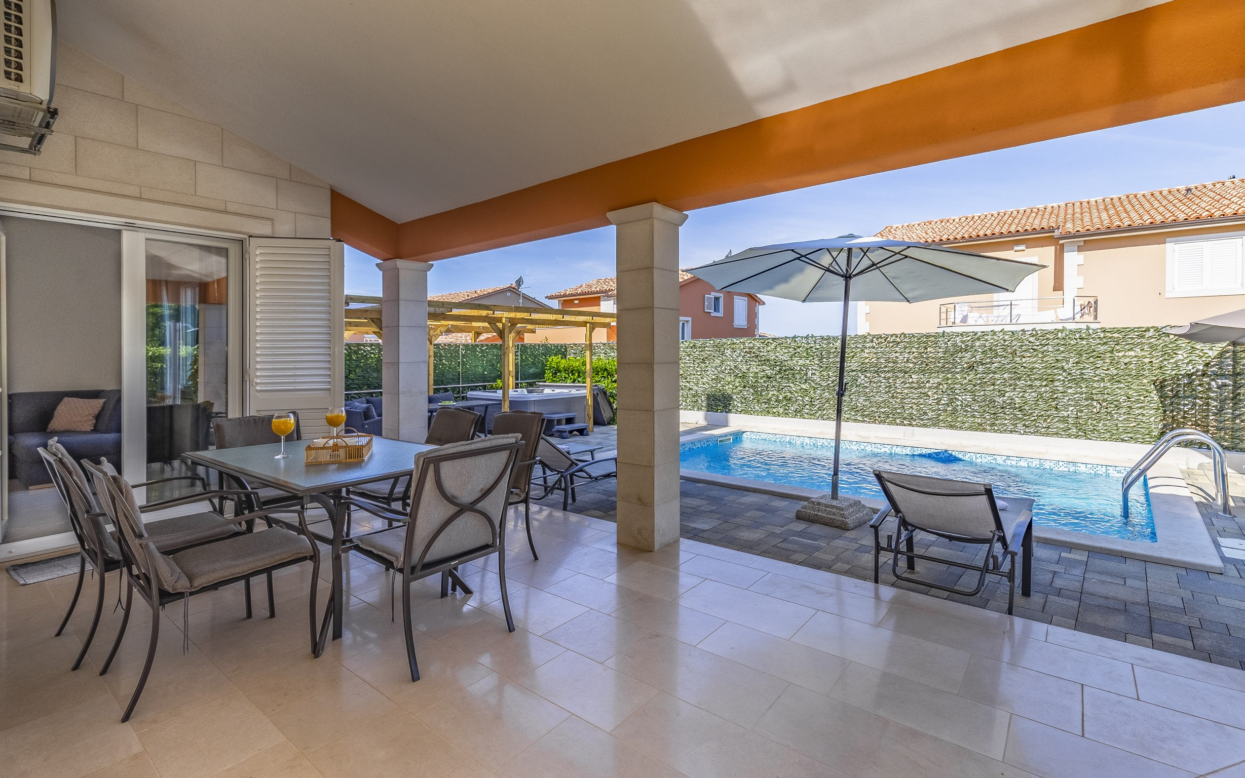 Outdoor space provides a lovely terrace with dining area and pool. The pool can be heated in pre-season and post-season upon request, for a fee of 15 EUR per day. If you'd like to use pool heating, please give us a 5-day notice.
